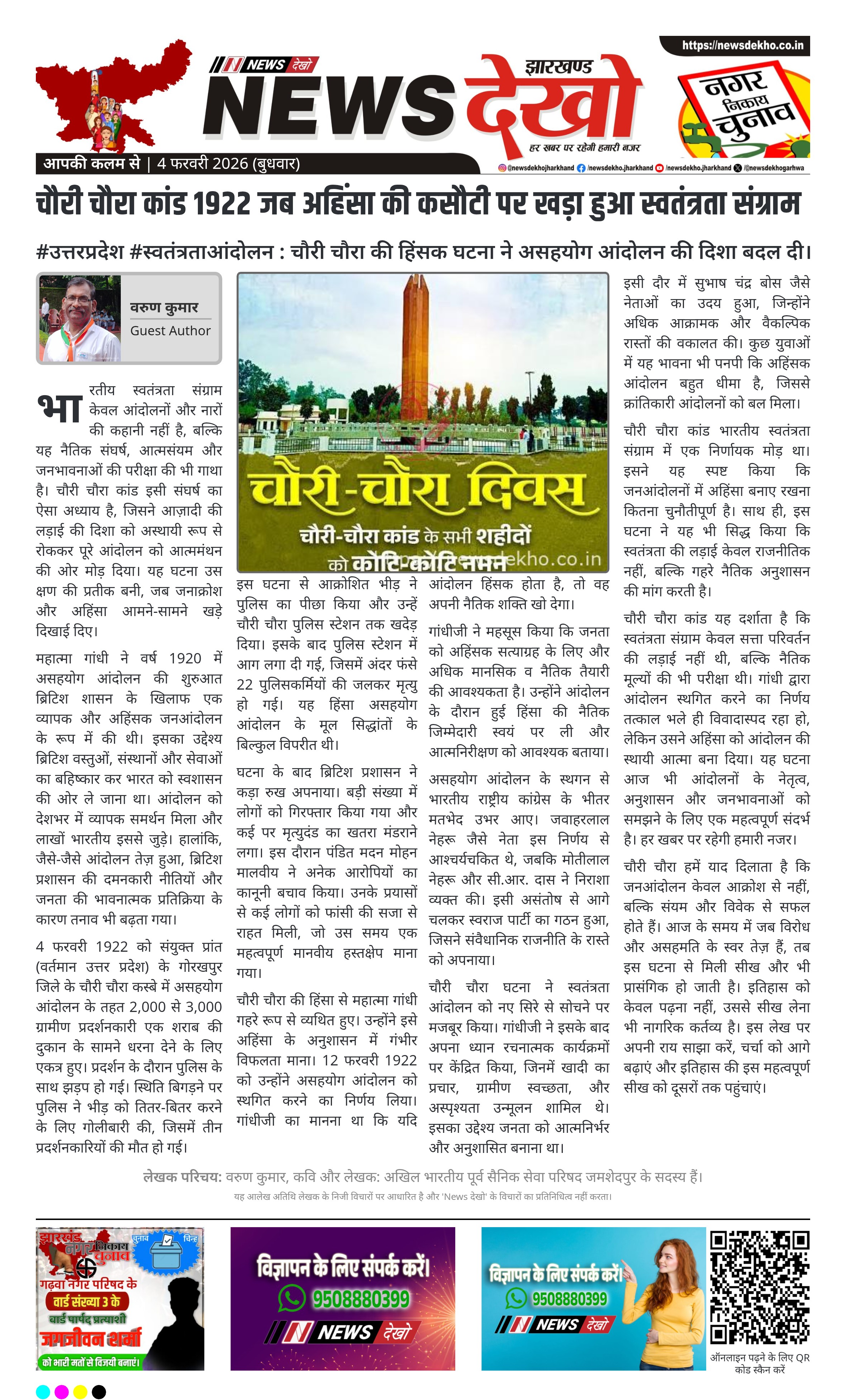 चौरी चौरा कांड यह दर्शाता है कि स्वतंत्रता संग्राम केवल सत्ता परिवर्तन की लड़ाई नहीं थी, बल्कि नैतिक मूल्यों की भी परीक्षा थी। गांधी द्वारा आंदोलन स्थगित करने का निर्णय तत्काल भले ही विवादास्पद रहा हो, लेकिन उसने अहिंसा को आंदोलन की स्थायी आत्मा बना दिया। यह घटना आज भी आंदोलनों के नेतृत्व, अनुशासन और जनभावनाओं को समझने के लिए एक महत्वपूर्ण संदर्भ है। हर खबर पर रहेगी हमारी नजर।