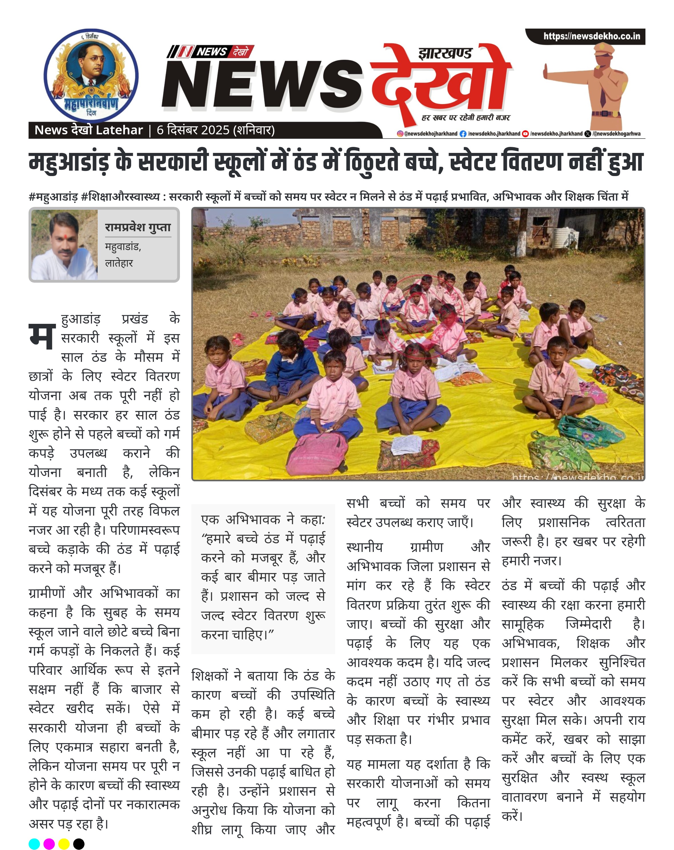 • महुआडांड़ प्रखंड के कई सरकारी स्कूलों में छात्रों को अभी तक स्वेटर वितरण नहीं हुआ।