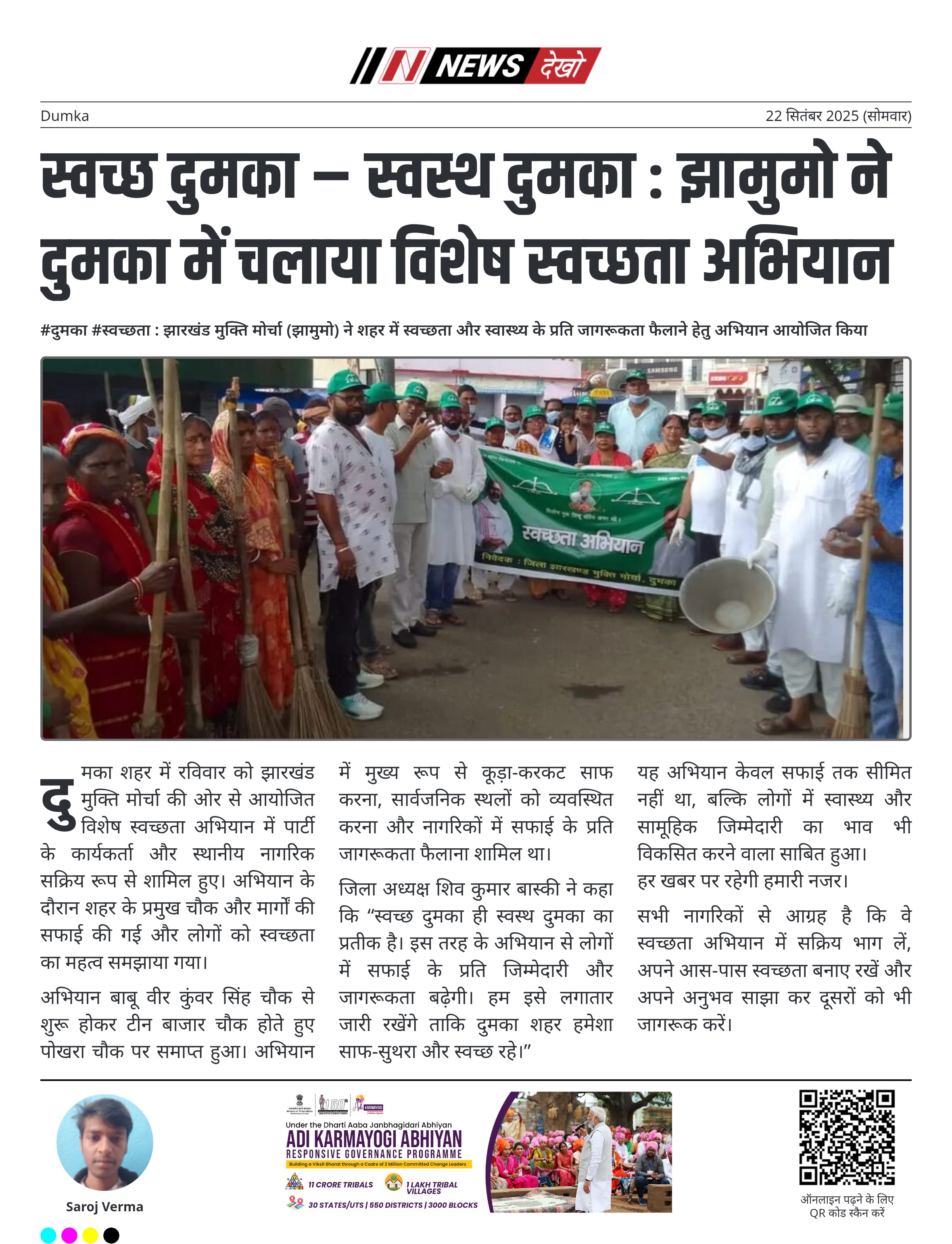 न्यूज़ देखो: झामुमो का स्वच्छता अभियान दुमका में लाया स्वास्थ्य और जागरूकता का संदेश