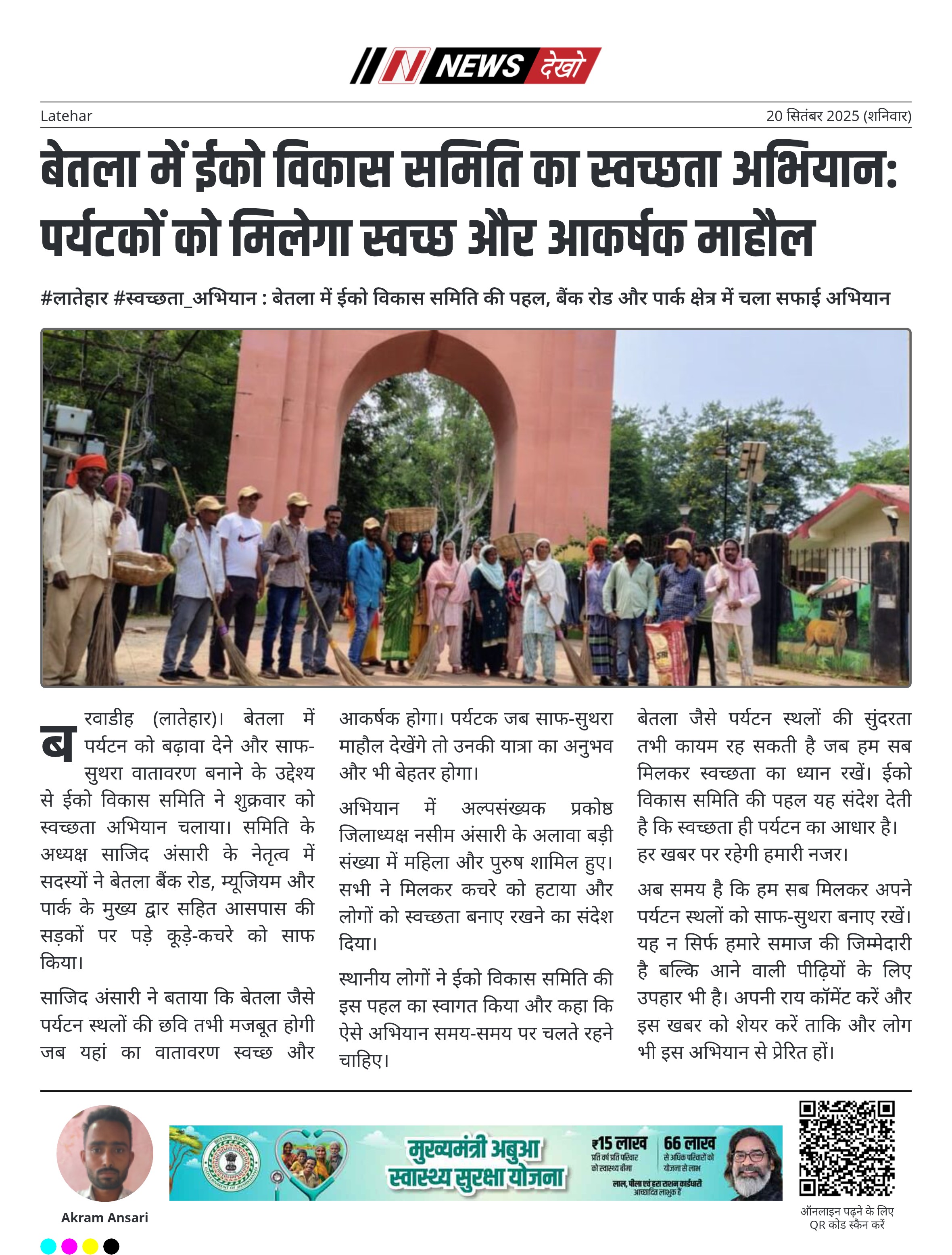 साजिद अंसारी ने बताया कि बेतला जैसे पर्यटन स्थलों की छवि तभी मजबूत होगी जब यहां का वातावरण स्वच्छ और आकर्षक होगा। पर्यटक जब साफ-सुथरा माहौल देखेंगे तो उनकी यात्रा का अनुभव और भी बेहतर होगा।