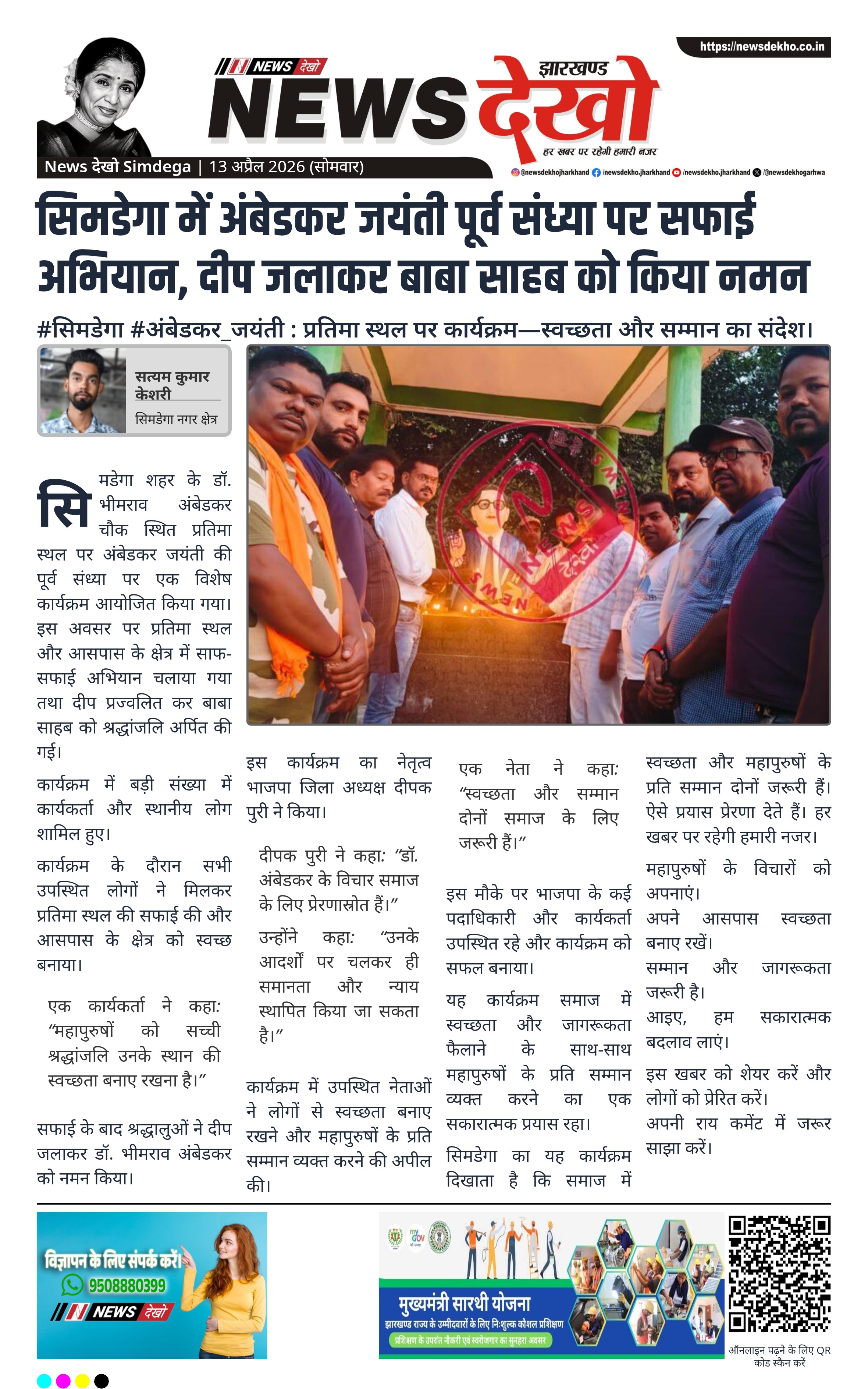#सिमडेगा #अंबेडकर_जयंती : प्रतिमा स्थल पर कार्यक्रम—स्वच्छता और सम्मान का संदेश।