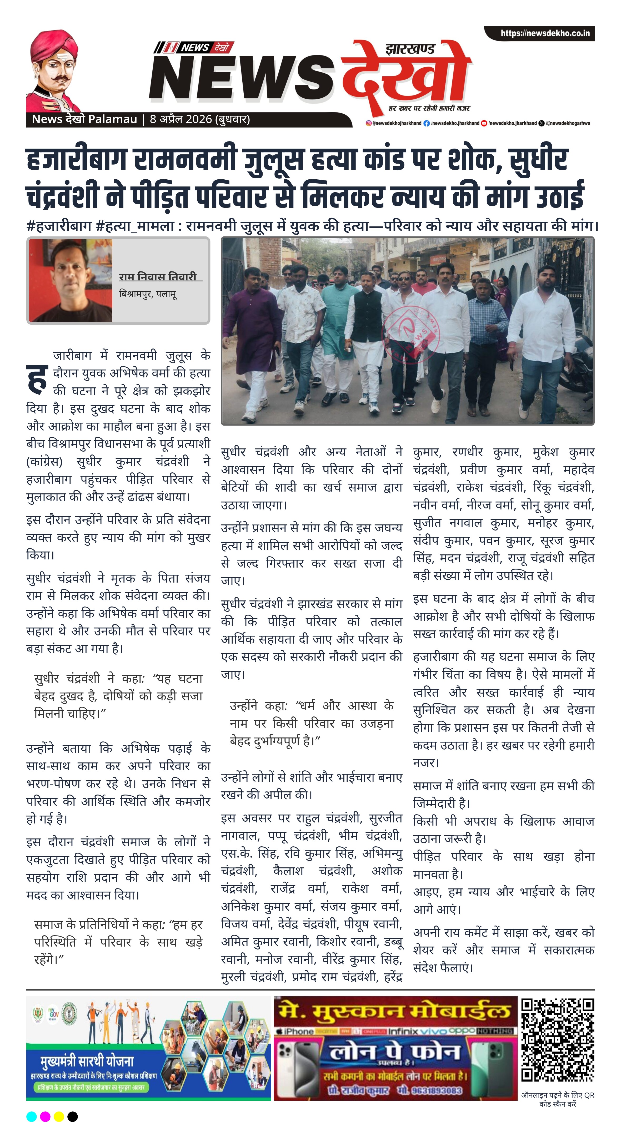 #हजारीबाग #हत्या_मामला : रामनवमी जुलूस में युवक की हत्या—परिवार को न्याय और सहायता की मांग।