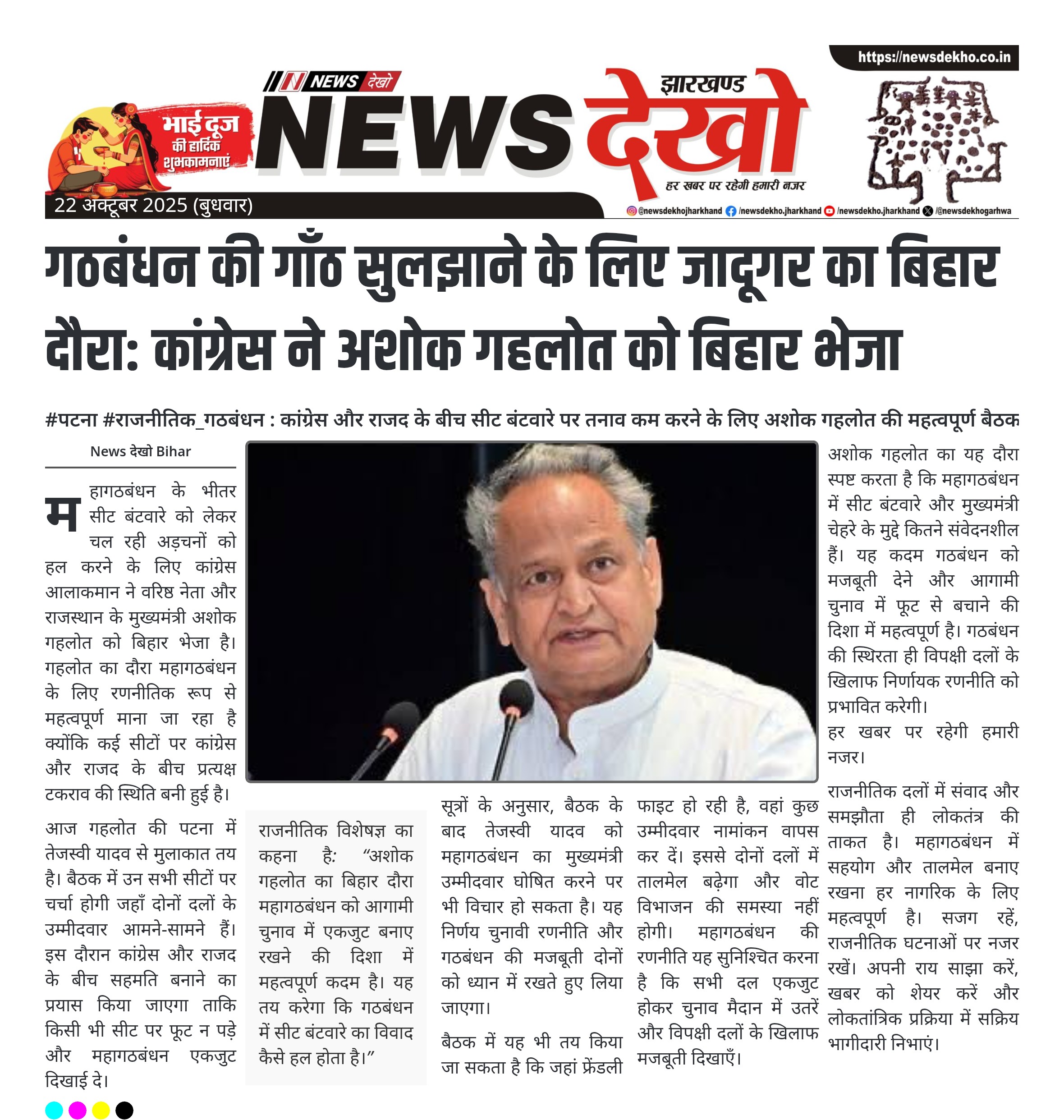 न्यूज़ देखो: महागठबंधन को बचाने के लिए गहलोत का बिहार दौरा