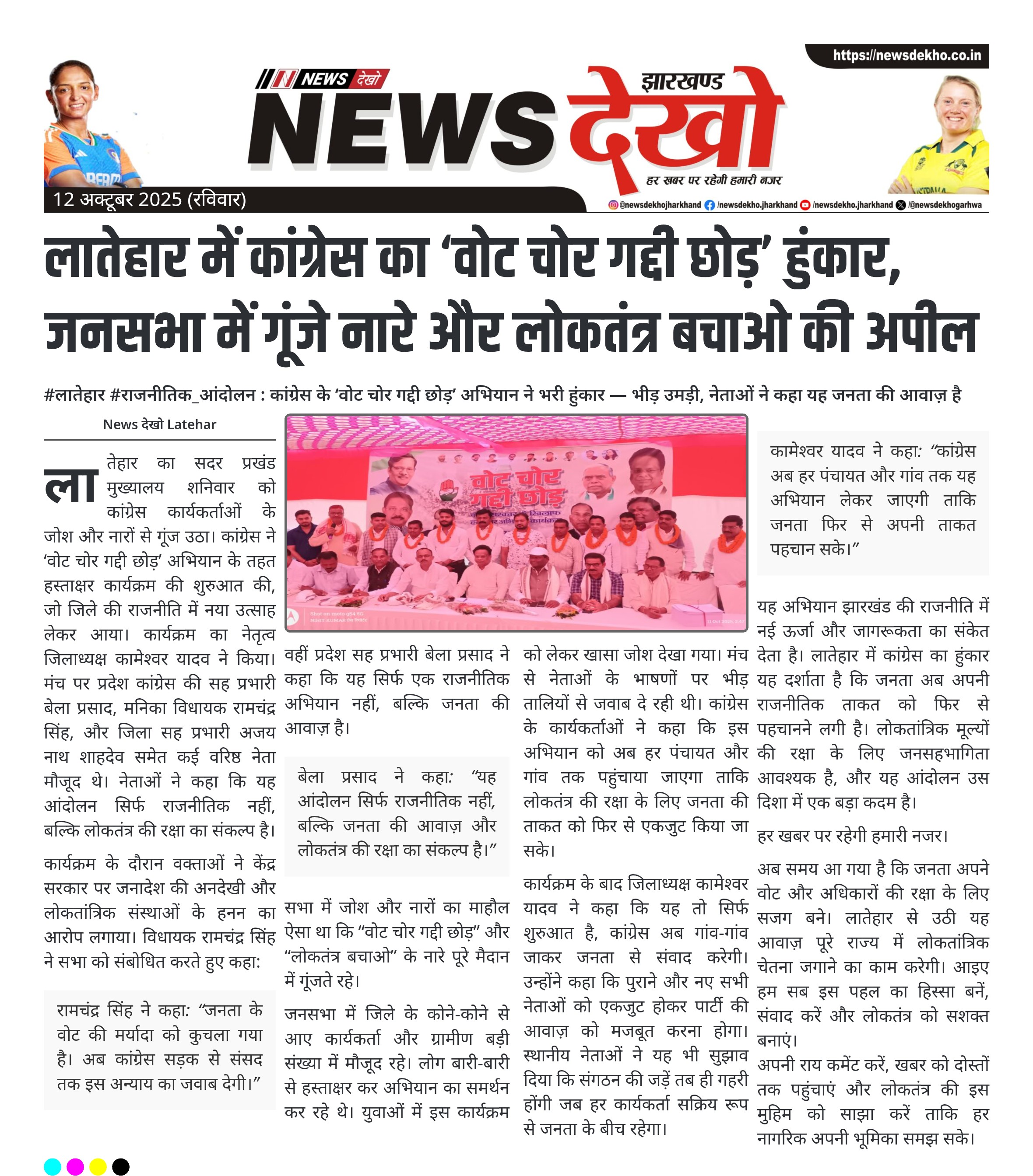 यह अभियान झारखंड की राजनीति में नई ऊर्जा और जागरूकता का संकेत देता है। लातेहार में कांग्रेस का हुंकार यह दर्शाता है कि जनता अब अपनी राजनीतिक ताकत को फिर से पहचानने लगी है। लोकतांत्रिक मूल्यों की रक्षा के लिए जनसहभागिता आवश्यक है, और यह आंदोलन उस दिशा में एक बड़ा कदम है।