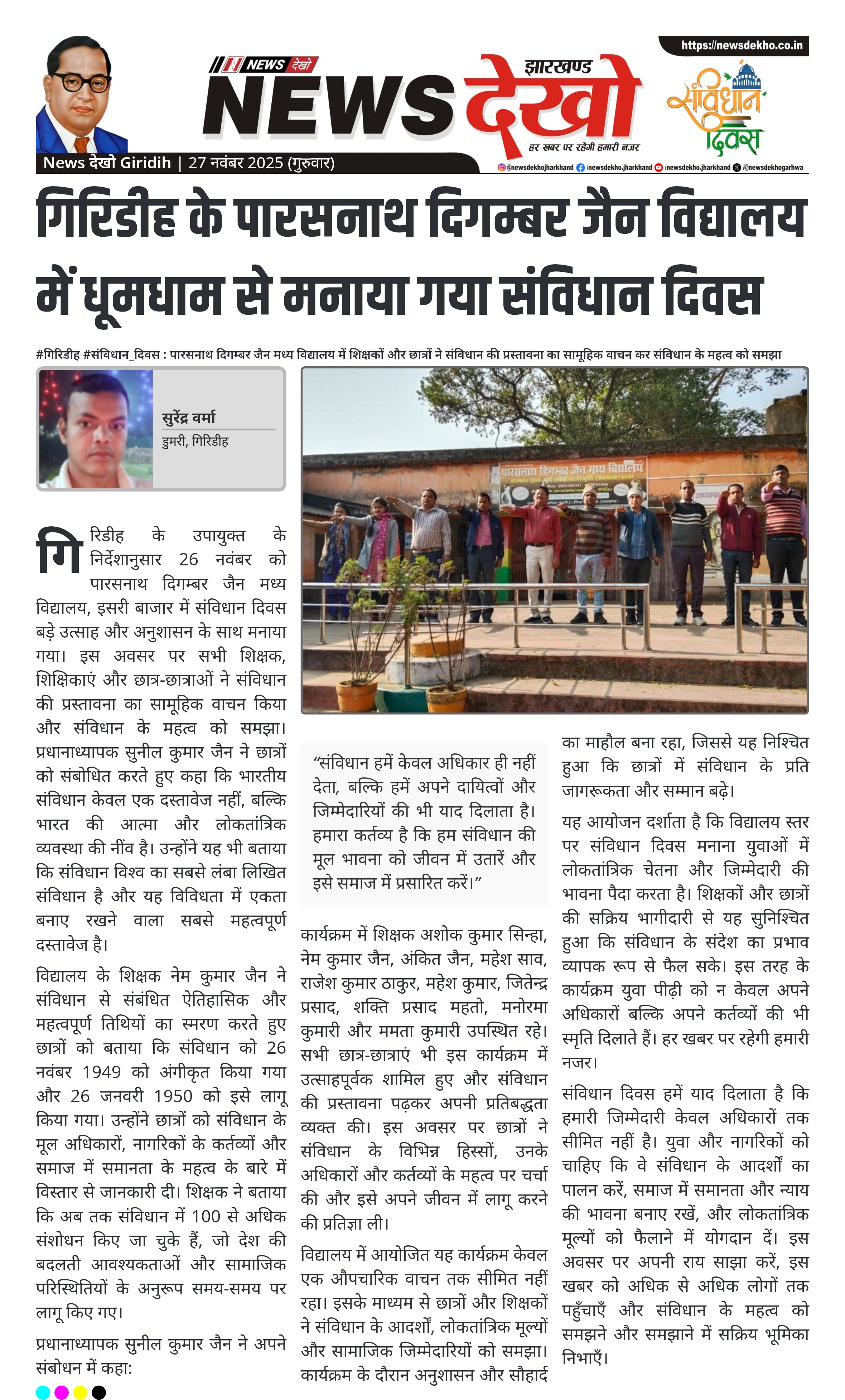 #गिरिडीह #संविधान_दिवस : पारसनाथ दिगम्बर जैन मध्य विद्यालय में शिक्षकों और छात्रों ने संविधान की प्रस्तावना का सामूहिक वाचन कर संविधान के महत्व को समझा