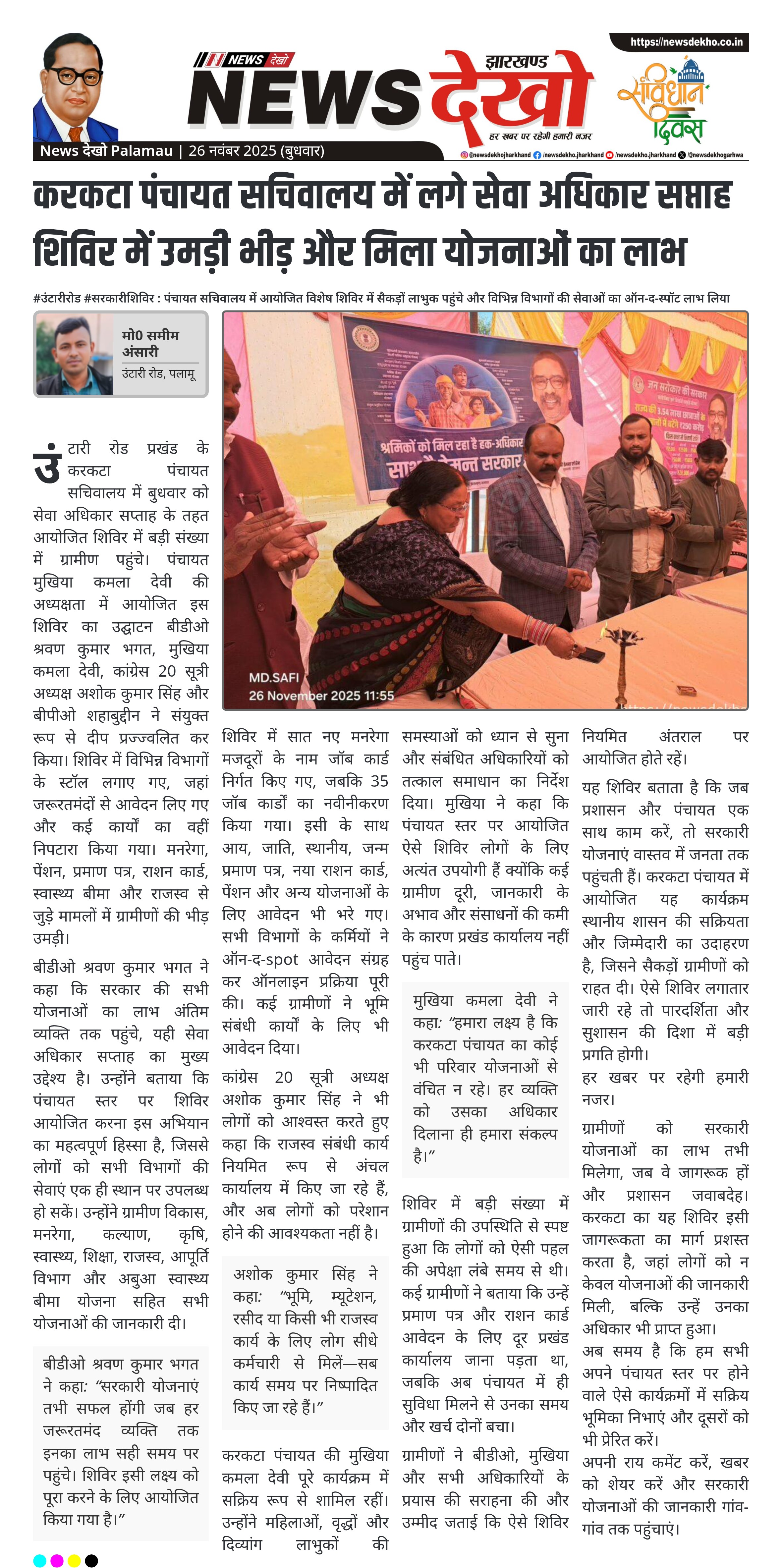 - करकटा पंचायत सचिवालय में सेवा अधिकार सप्ताह के तहत बड़ा शिविर आयोजित हुआ।
