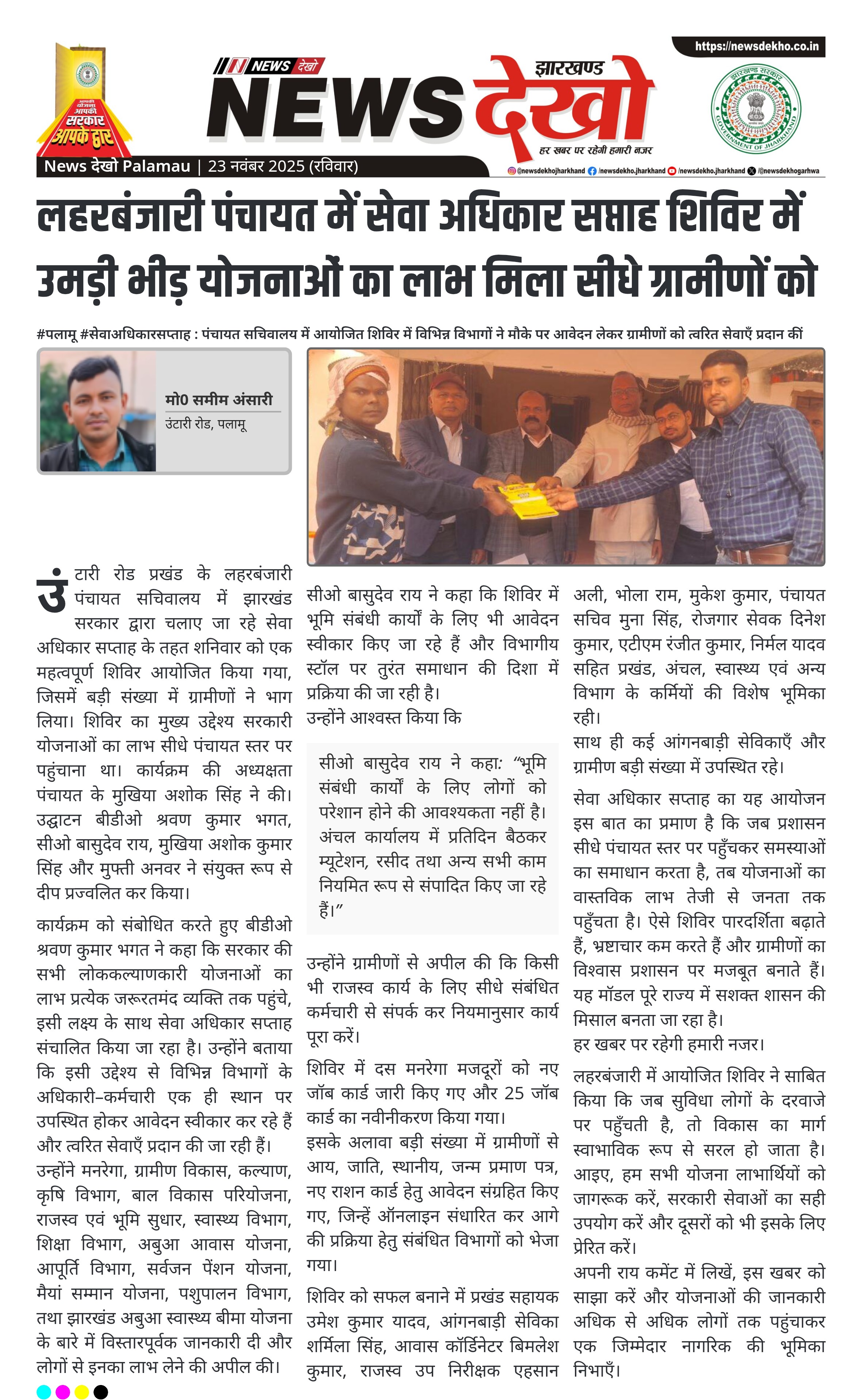 #पलामू #सेवाअधिकारसप्ताह : पंचायत सचिवालय में आयोजित शिविर में विभिन्न विभागों ने मौके पर आवेदन लेकर ग्रामीणों को त्वरित सेवाएँ प्रदान कीं
