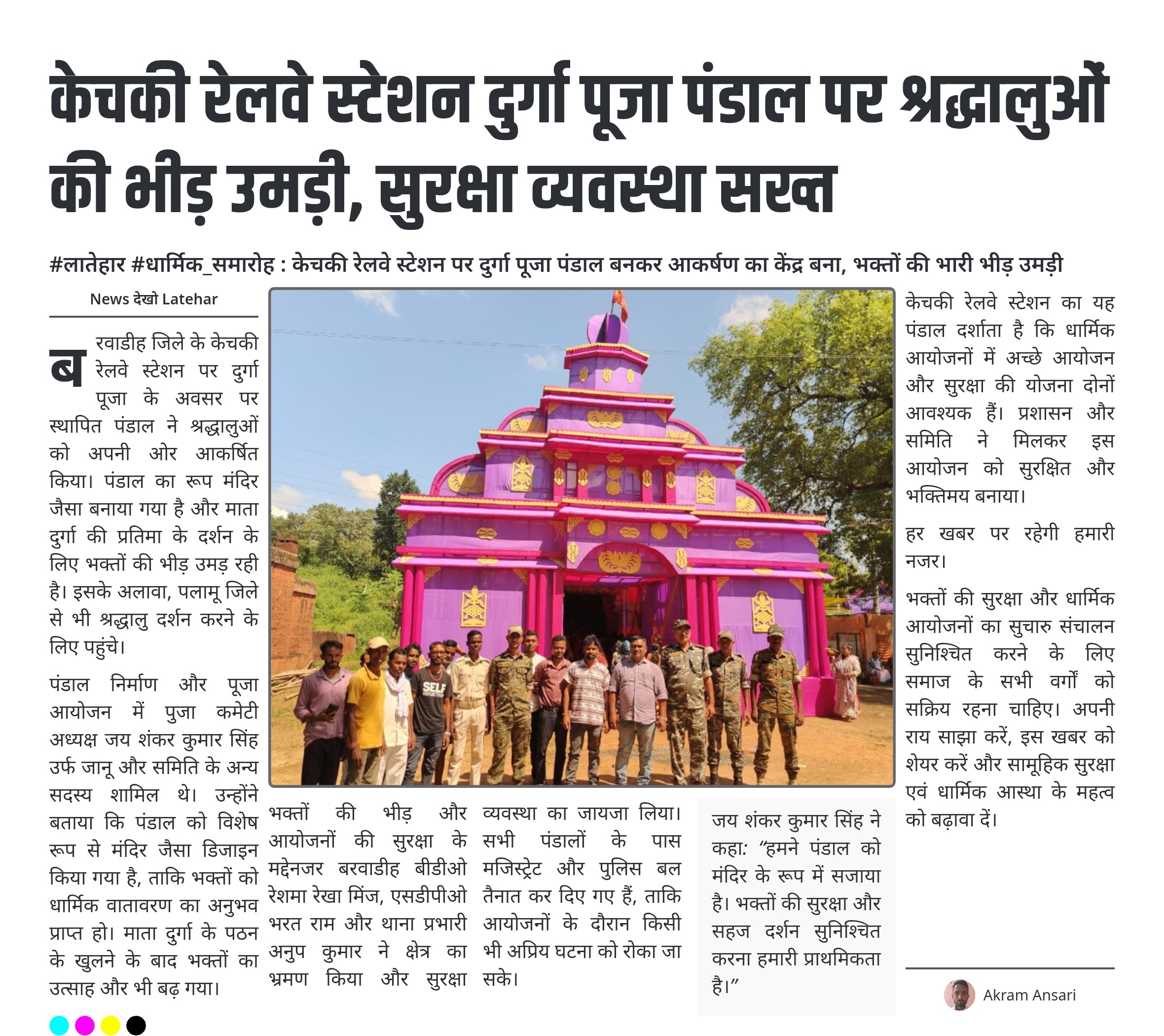 #लातेहार #धार्मिक_समारोह : केचकी रेलवे स्टेशन पर दुर्गा पूजा पंडाल बनकर आकर्षण का केंद्र बना, भक्तों की भारी भीड़ उमड़ी