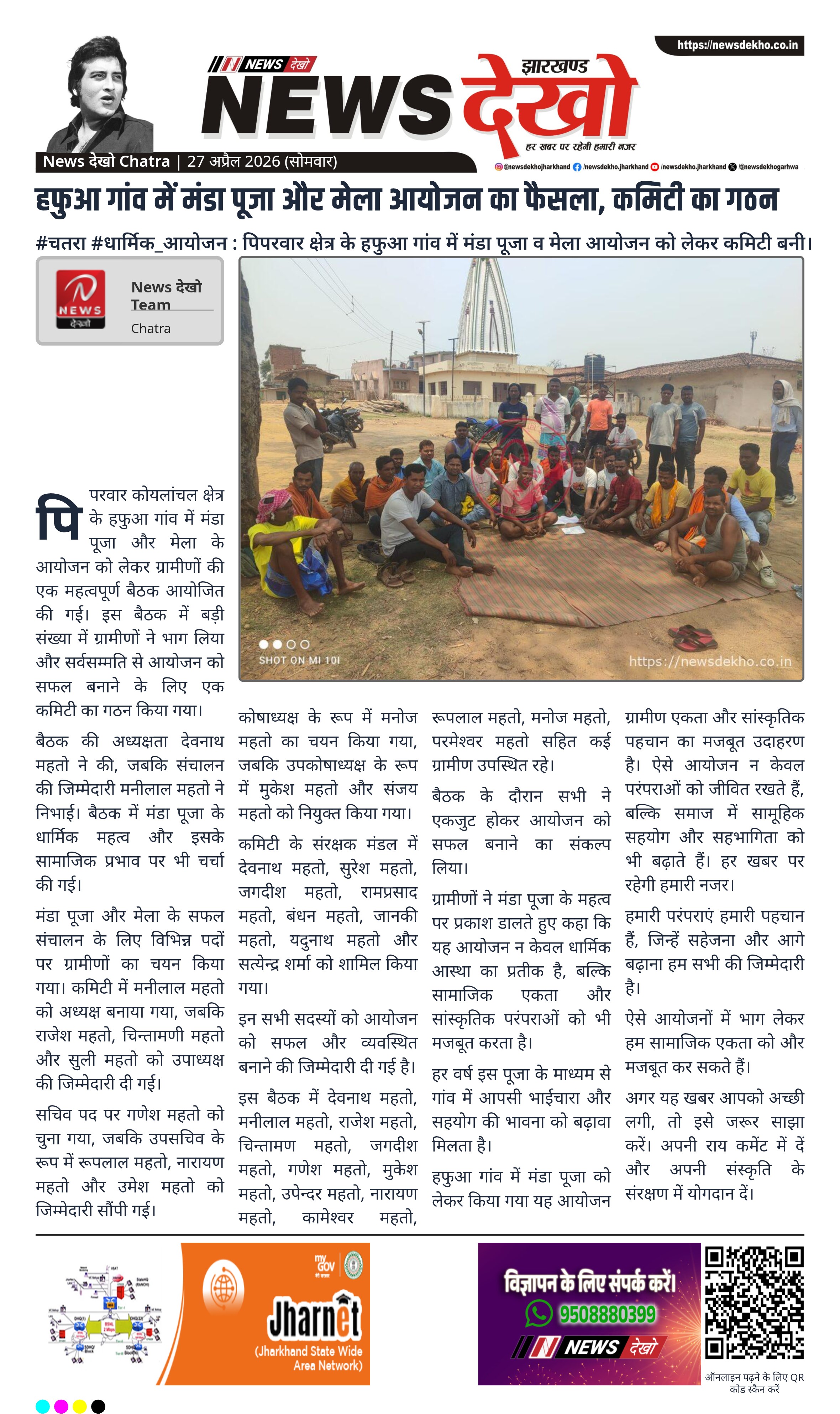 - हफुआ गांव (पिपरवार, चतरा) में मंडा पूजा को लेकर बैठक।