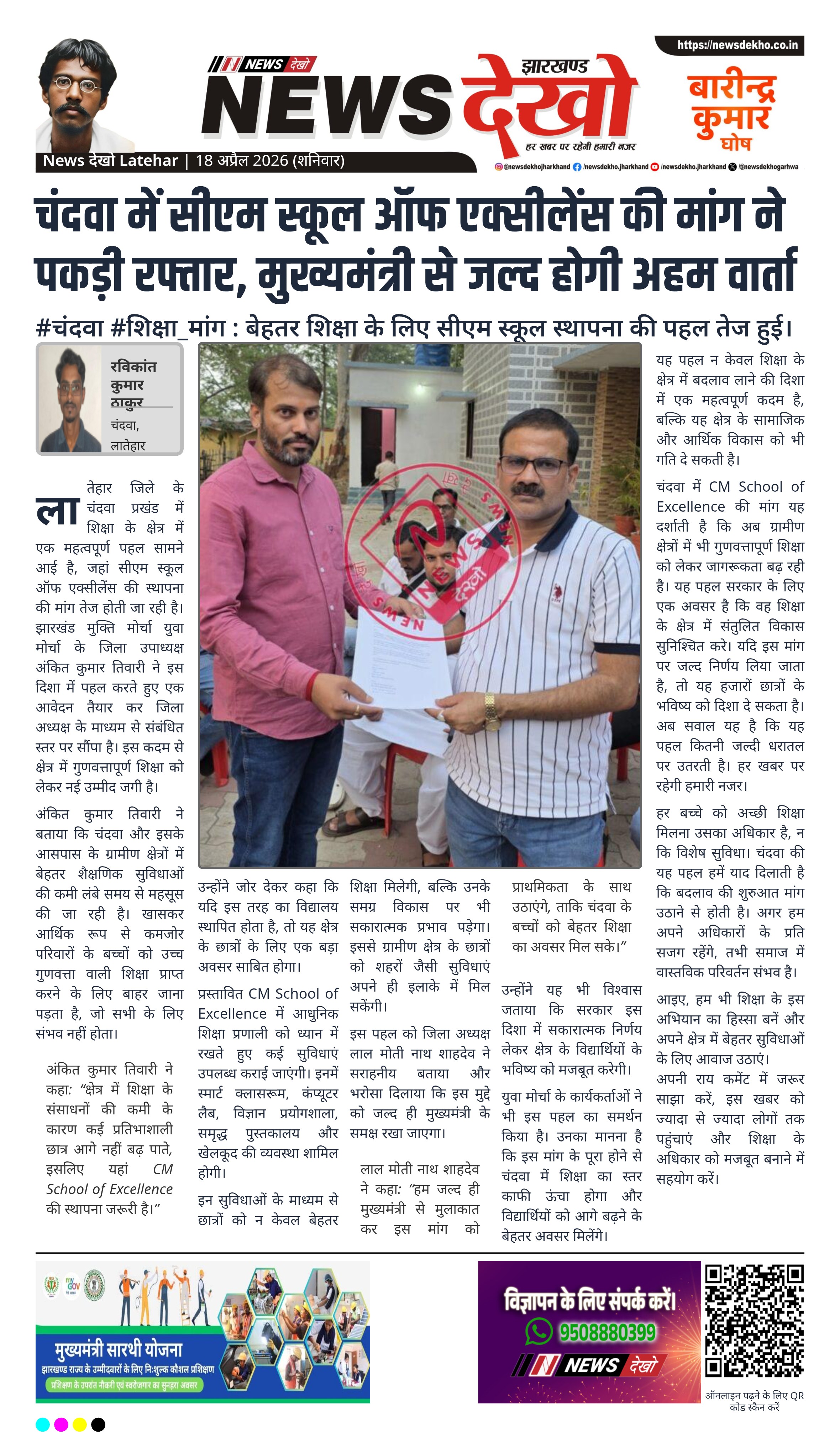 लाल मोती नाथ शाहदेव ने कहा: “हम जल्द ही मुख्यमंत्री से मुलाकात कर इस मांग को प्राथमिकता के साथ उठाएंगे, ताकि चंदवा के बच्चों को बेहतर शिक्षा का अवसर मिल सके।”