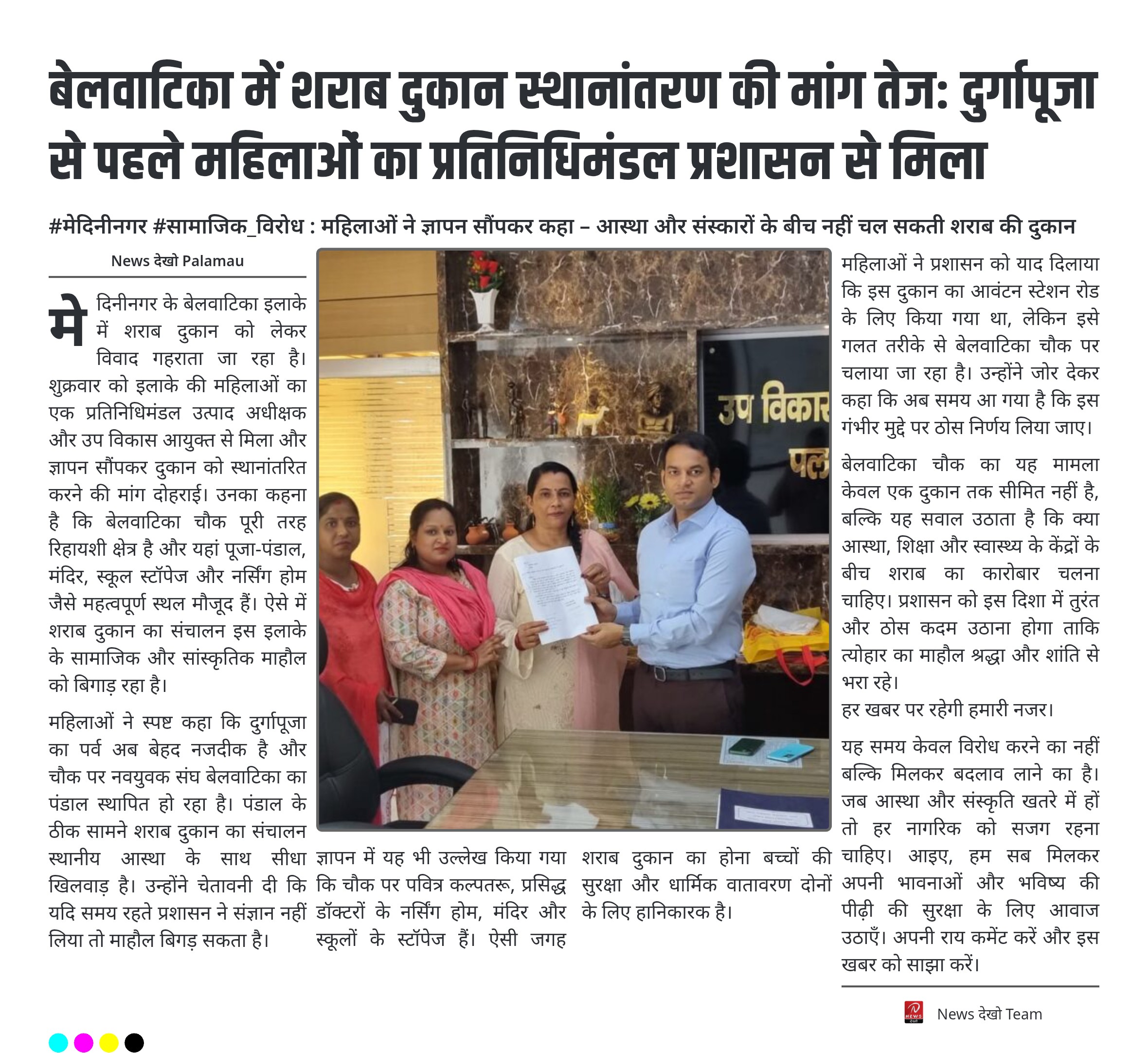 - बेलवाटिका चौक की महिलाओं ने प्रशासन से शराब दुकान स्थानांतरण की मांग उठाई।