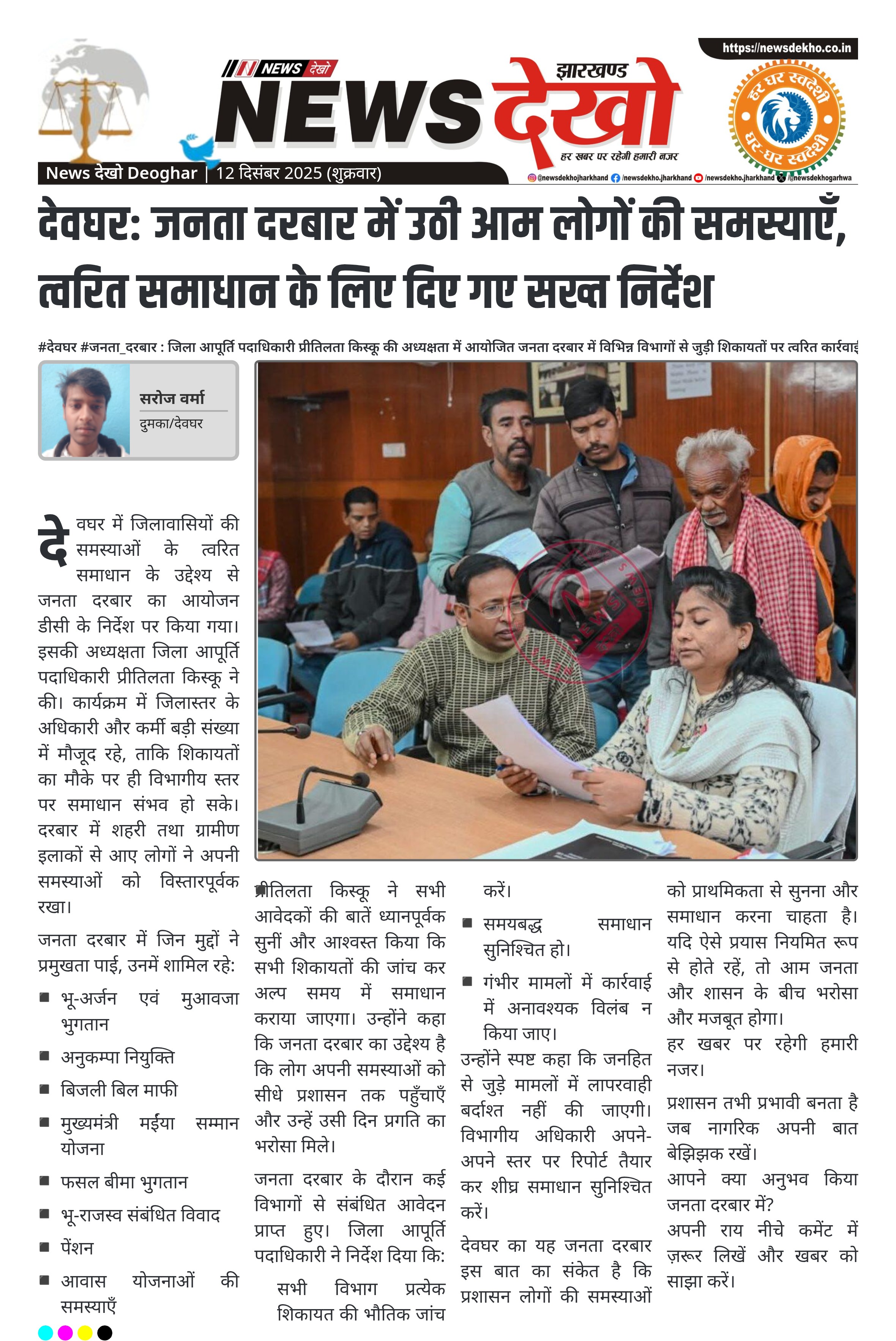 देवघर का यह जनता दरबार इस बात का संकेत है कि प्रशासन लोगों की समस्याओं को प्राथमिकता से सुनना और समाधान करना चाहता है। यदि ऐसे प्रयास नियमित रूप से होते रहें, तो आम जनता और शासन के बीच भरोसा और मजबूत होगा।