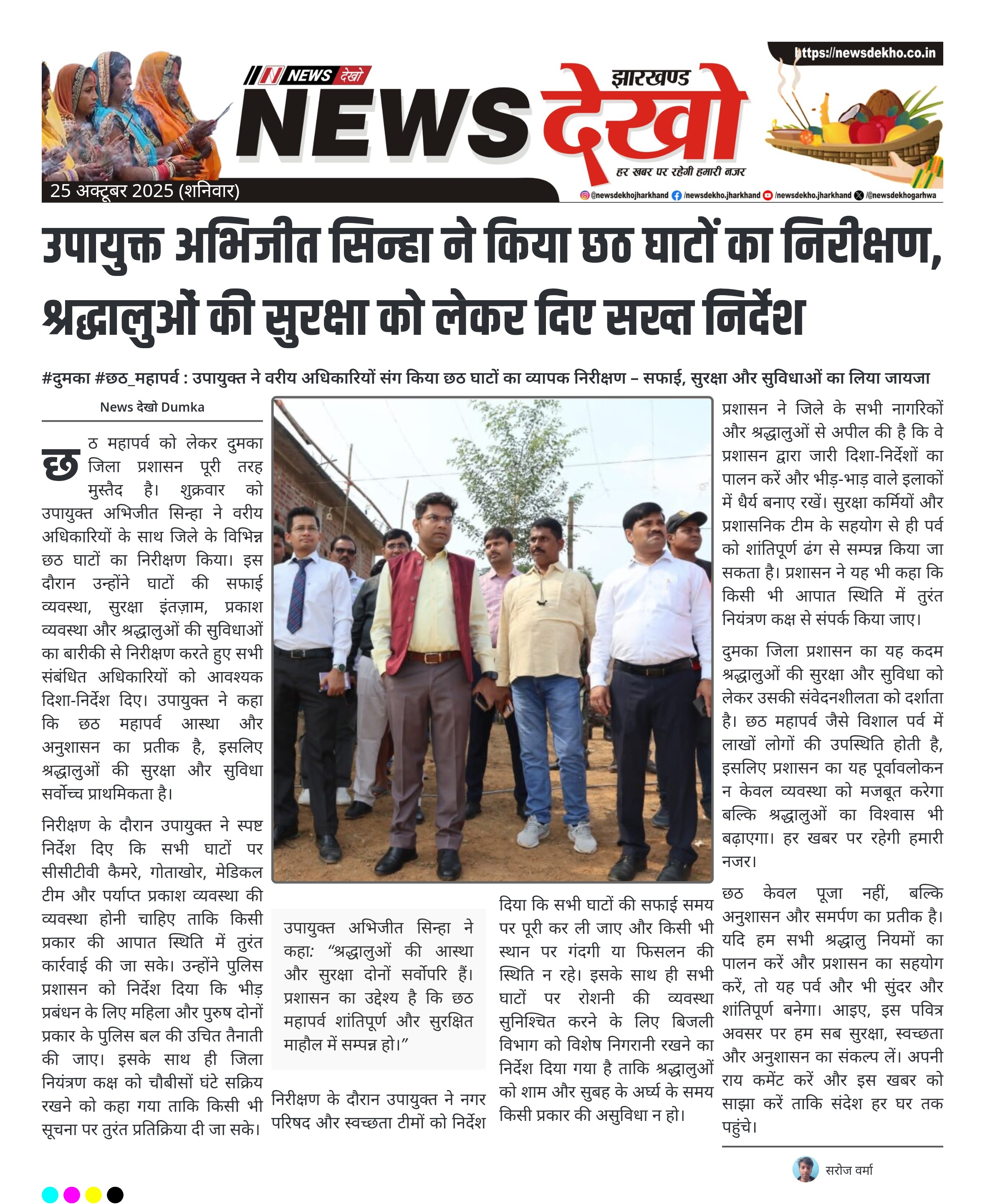 #दुमका #छठ_महापर्व : उपायुक्त ने वरीय अधिकारियों संग किया छठ घाटों का व्यापक निरीक्षण – सफाई, सुरक्षा और सुविधाओं का लिया जायजा