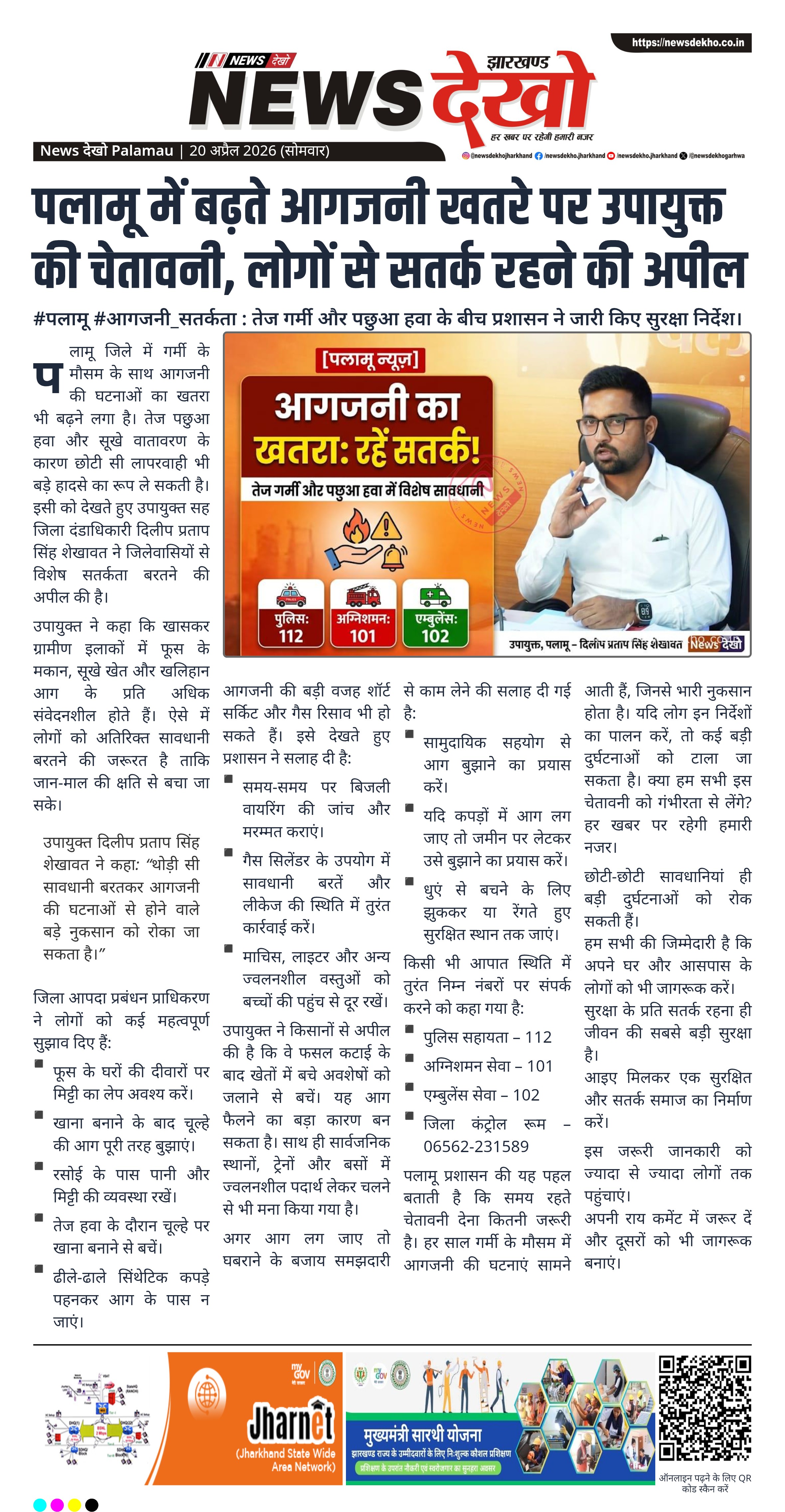 #पलामू #आगजनी_सतर्कता : तेज गर्मी और पछुआ हवा के बीच प्रशासन ने जारी किए सुरक्षा निर्देश।