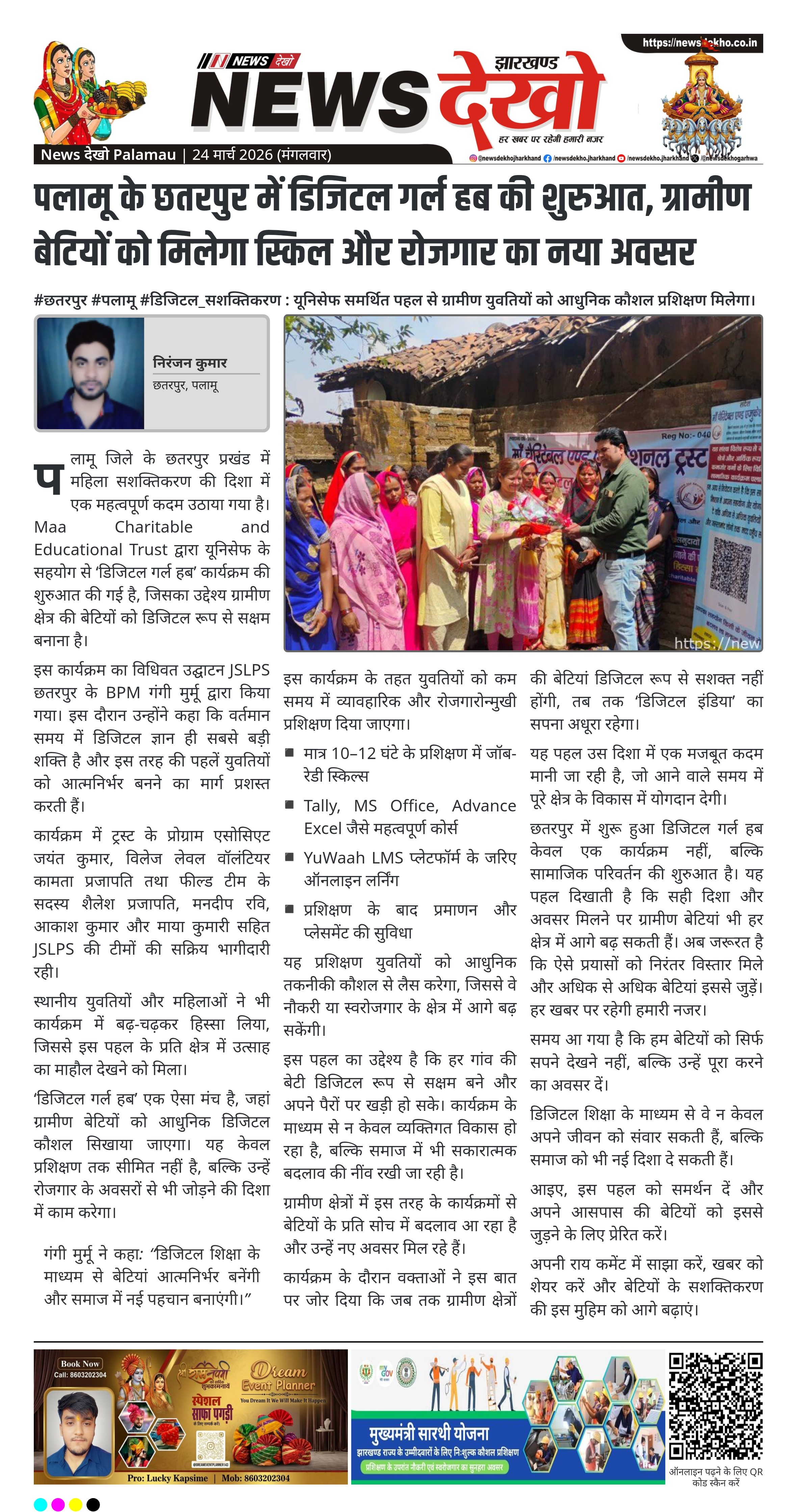 • छतरपुर (पलामू) में ‘डिजिटल गर्ल हब’ का शुभारंभ।