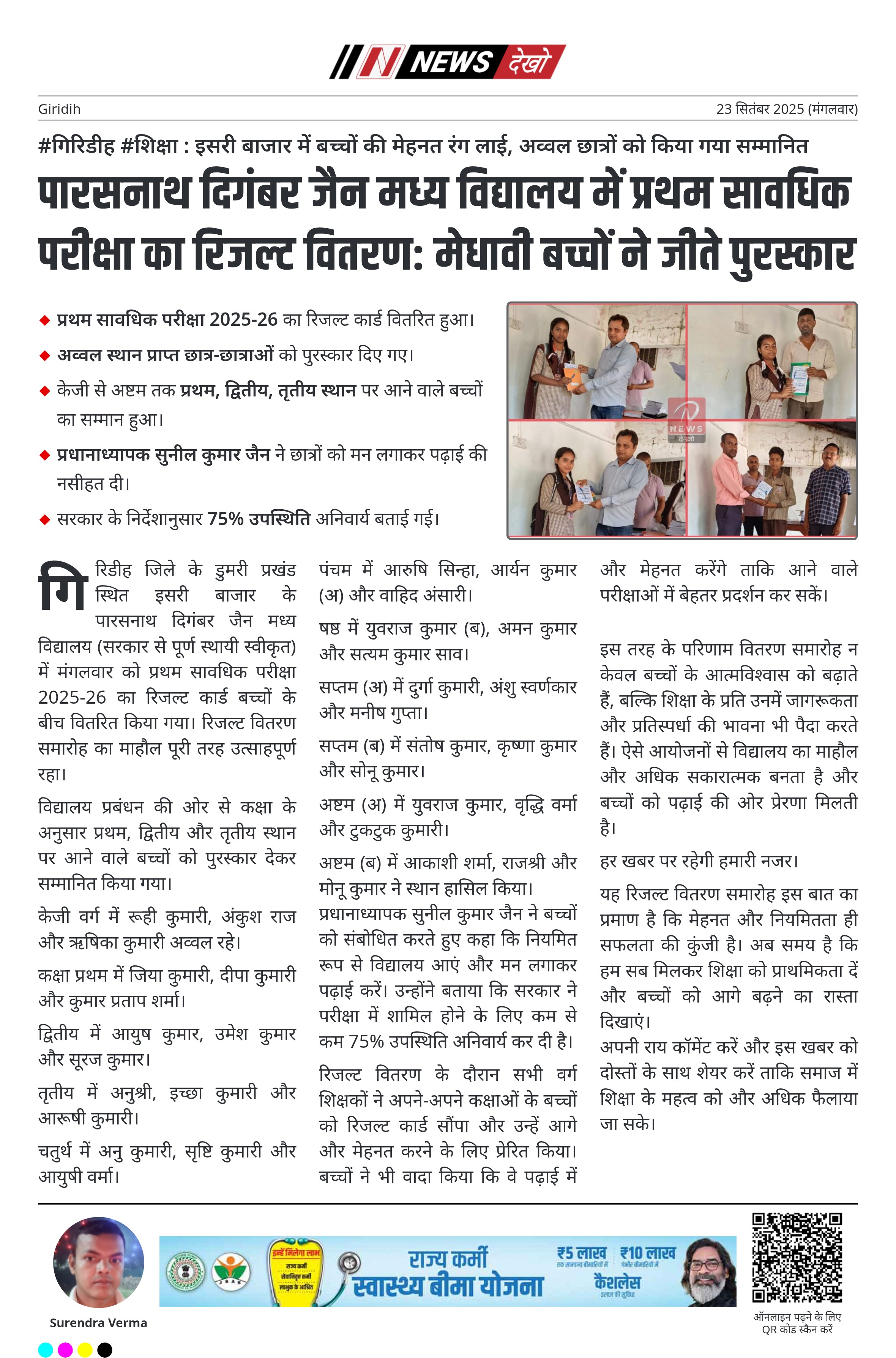 #गिरिडीह #शिक्षा : इसरी बाजार में बच्चों की मेहनत रंग लाई, अव्वल छात्रों को किया गया सम्मानित