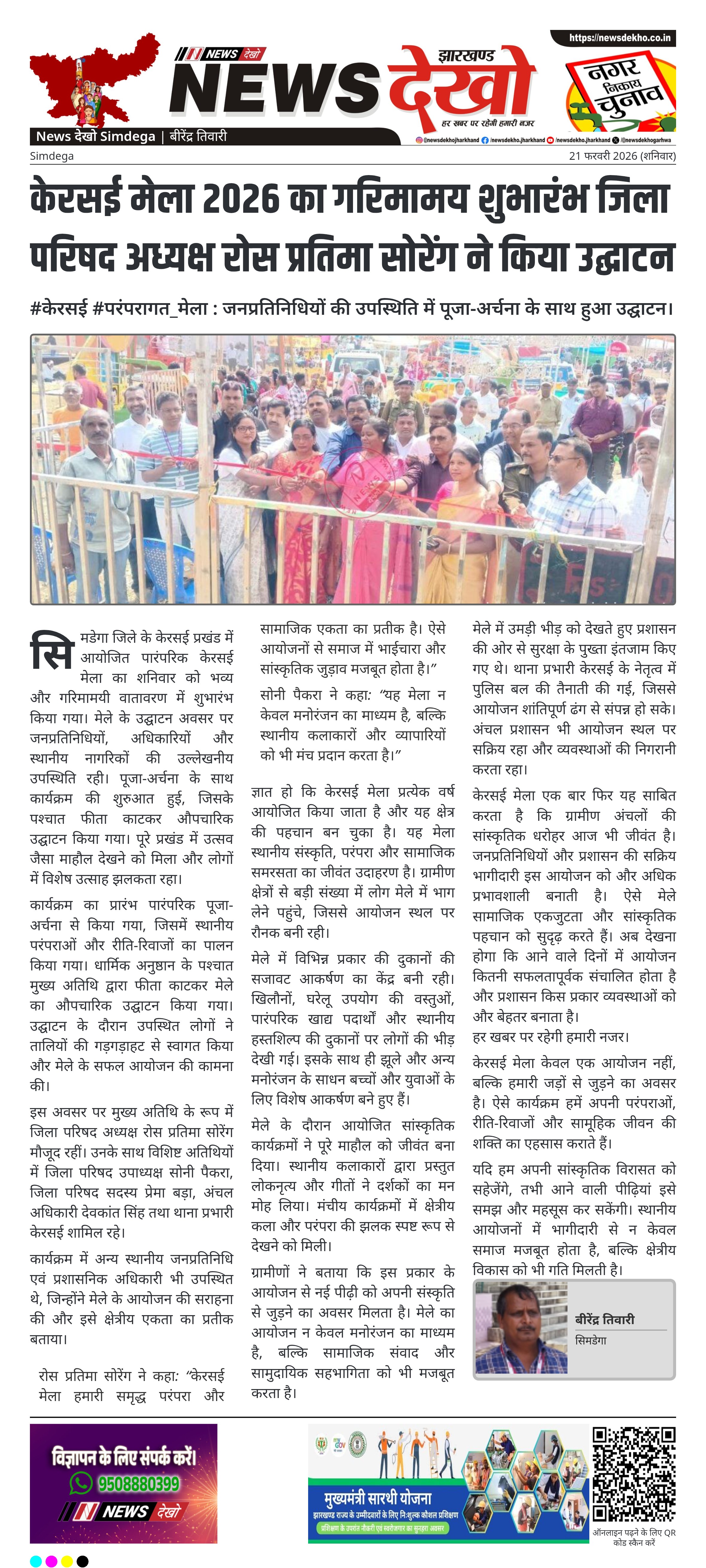 - 21 फरवरी 2026 को केरसई प्रखंड, सिमडेगा में हुआ उद्घाटन।