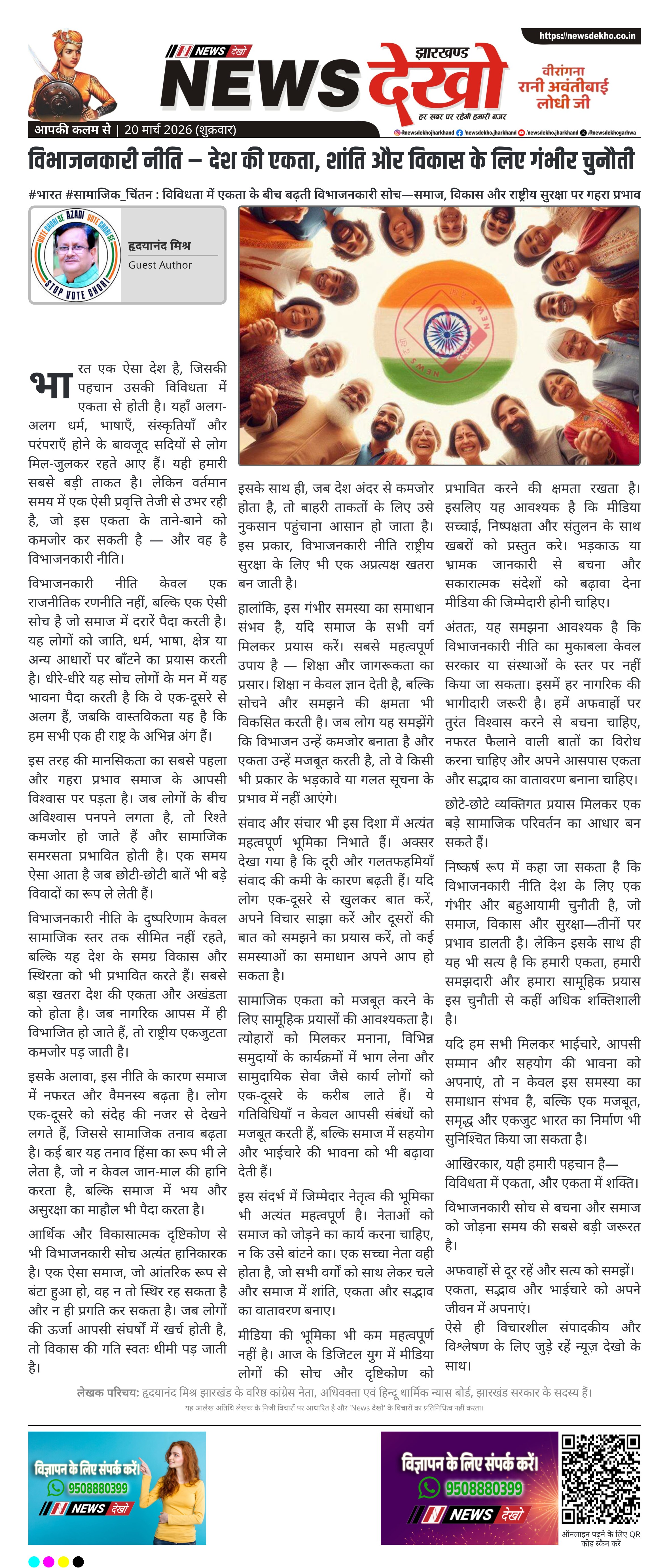 विभाजनकारी सोच से बचना और समाज को जोड़ना समय की सबसे बड़ी जरूरत है।