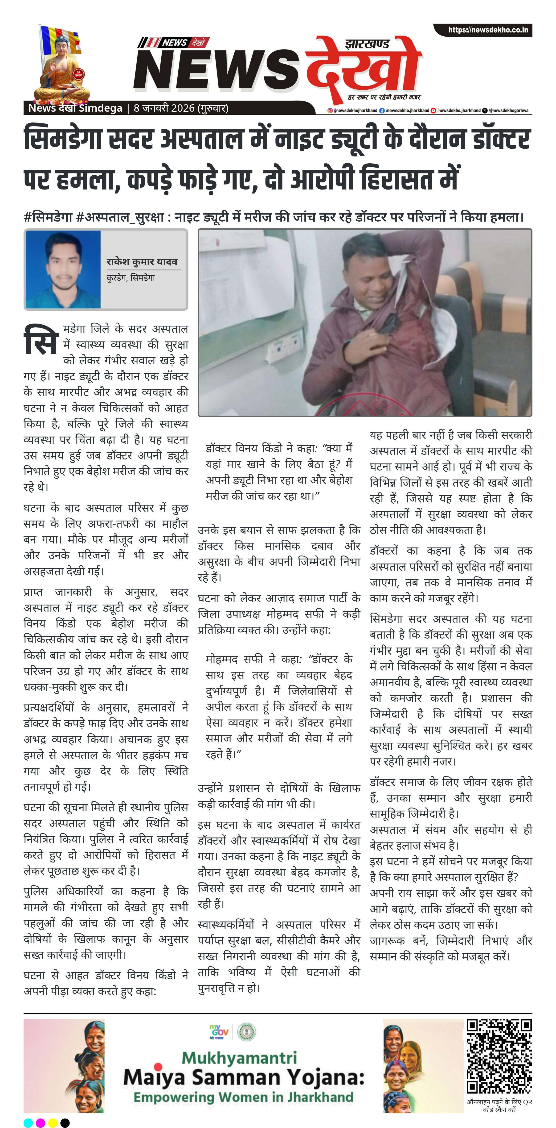 - सदर अस्पताल सिमडेगा में नाइट ड्यूटी के दौरान हमला।