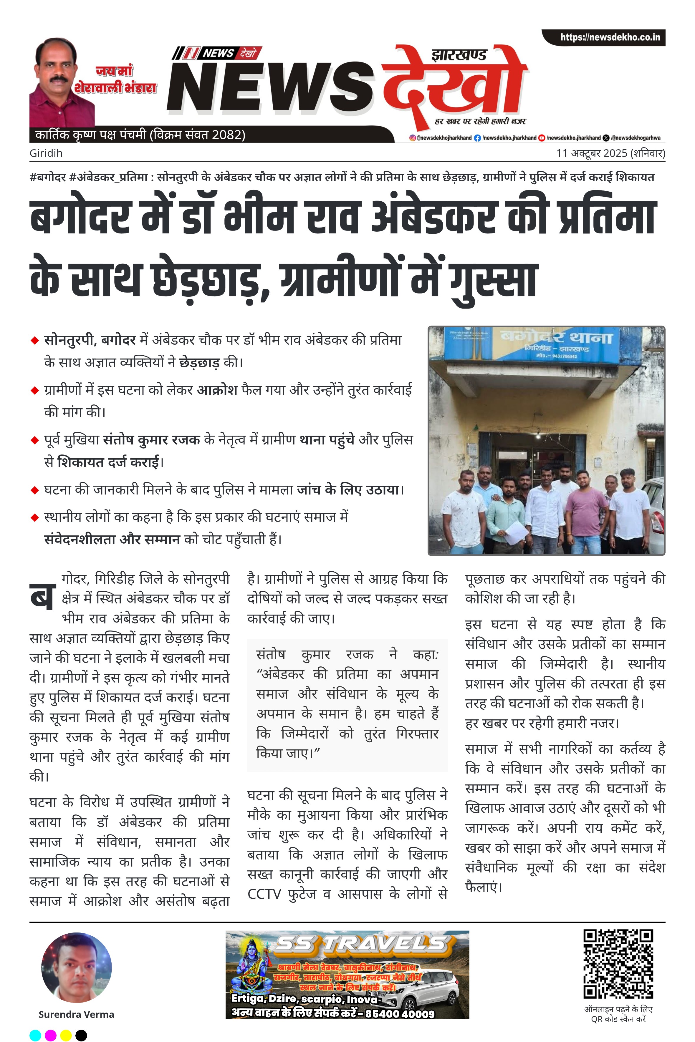 संतोष कुमार रजक ने कहा: “अंबेडकर की प्रतिमा का अपमान समाज और संविधान के मूल्य के अपमान के समान है। हम चाहते हैं कि जिम्मेदारों को तुरंत गिरफ्तार किया जाए।”