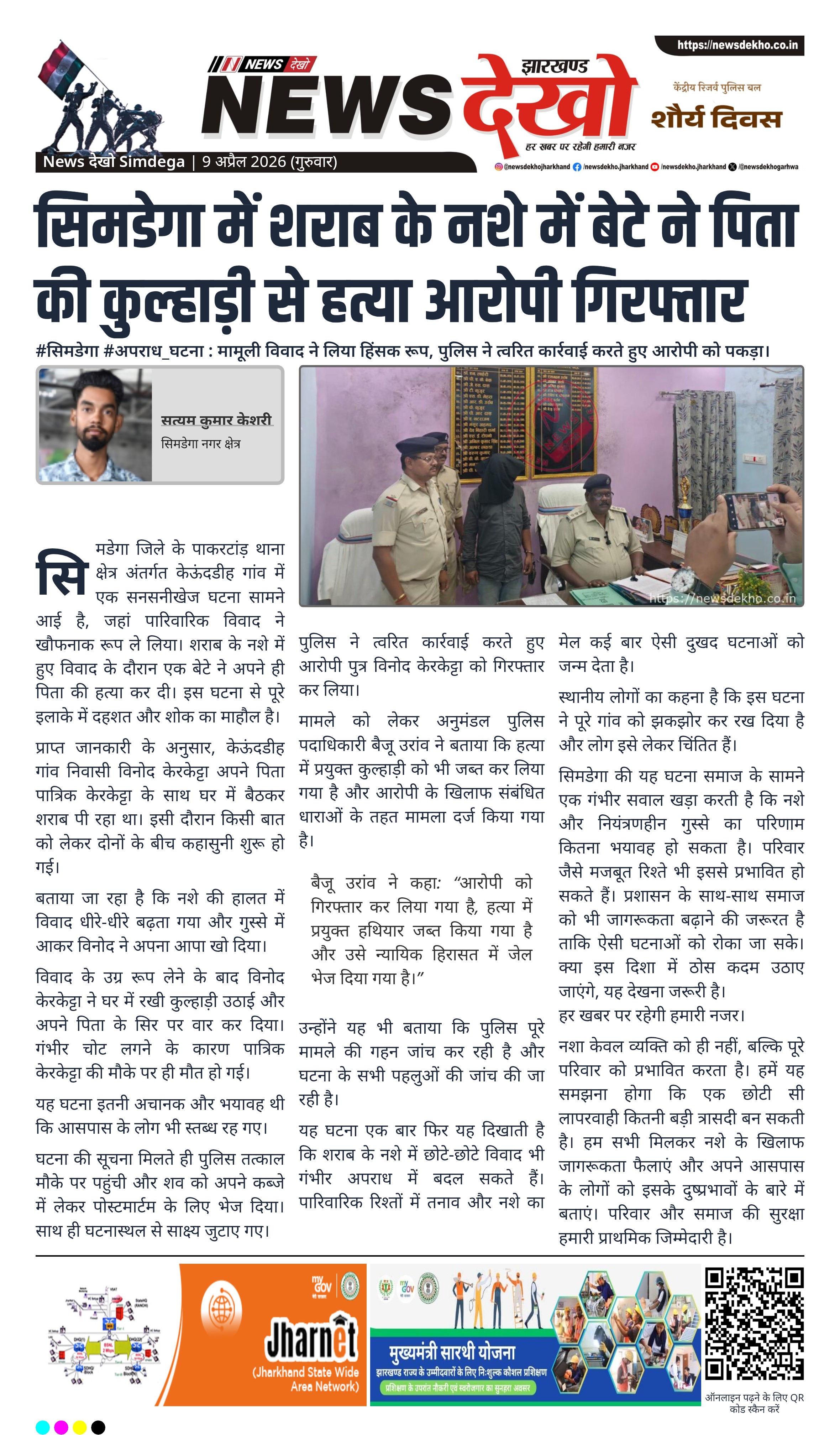 सिमडेगा की यह घटना समाज के सामने एक गंभीर सवाल खड़ा करती है कि नशे और नियंत्रणहीन गुस्से का परिणाम कितना भयावह हो सकता है। परिवार जैसे मजबूत रिश्ते भी इससे प्रभावित हो सकते हैं। प्रशासन के साथ-साथ समाज को भी जागरूकता बढ़ाने की जरूरत है ताकि ऐसी घटनाओं को रोका जा सके। क्या इस दिशा में ठोस कदम उठाए जाएंगे, यह देखना जरूरी है।