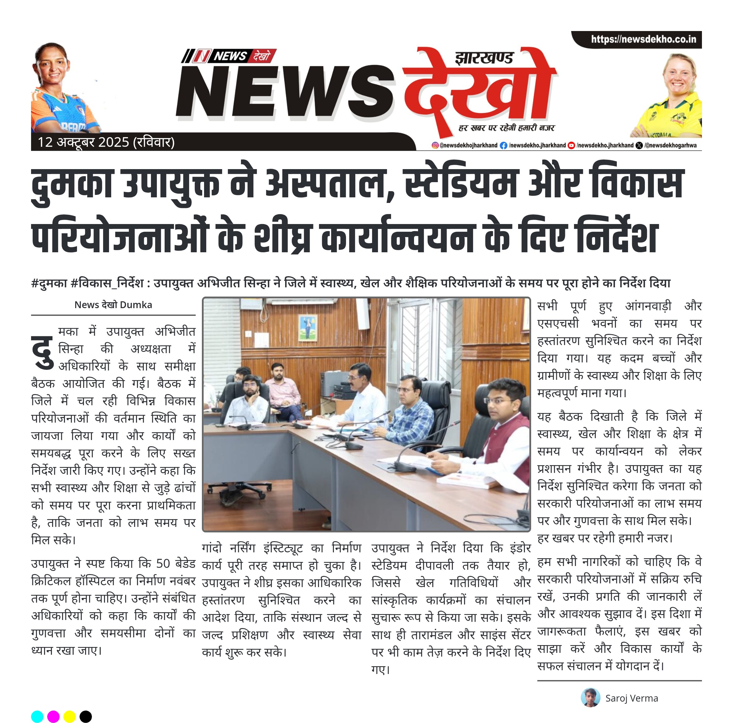 #दुमका #विकास_निर्देश : उपायुक्त अभिजीत सिन्हा ने जिले में स्वास्थ्य, खेल और शैक्षिक परियोजनाओं के समय पर पूरा होने का निर्देश दिया