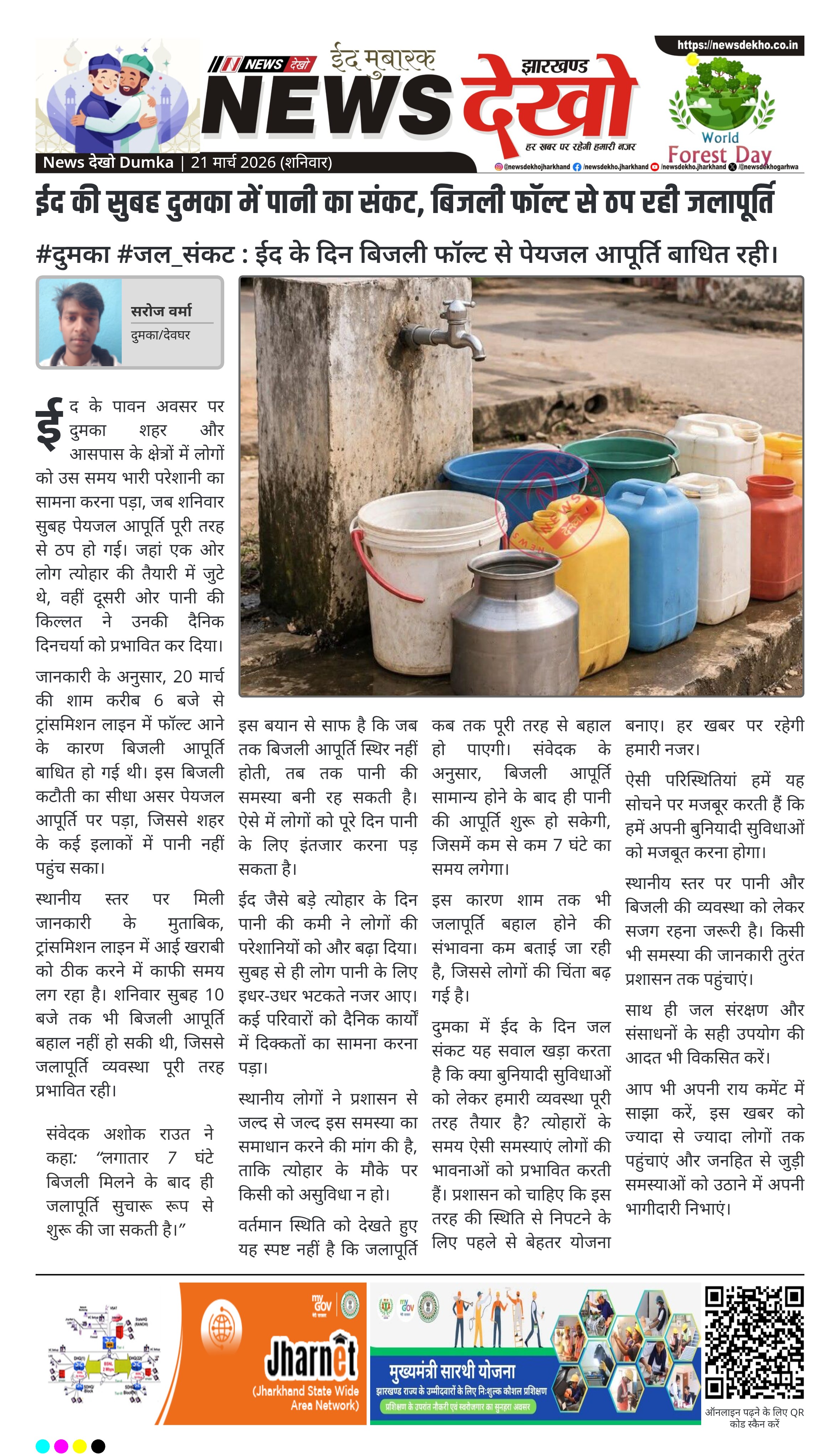 - दुमका शहर में ईद के दिन पेयजल आपूर्ति पूरी तरह ठप रही।
