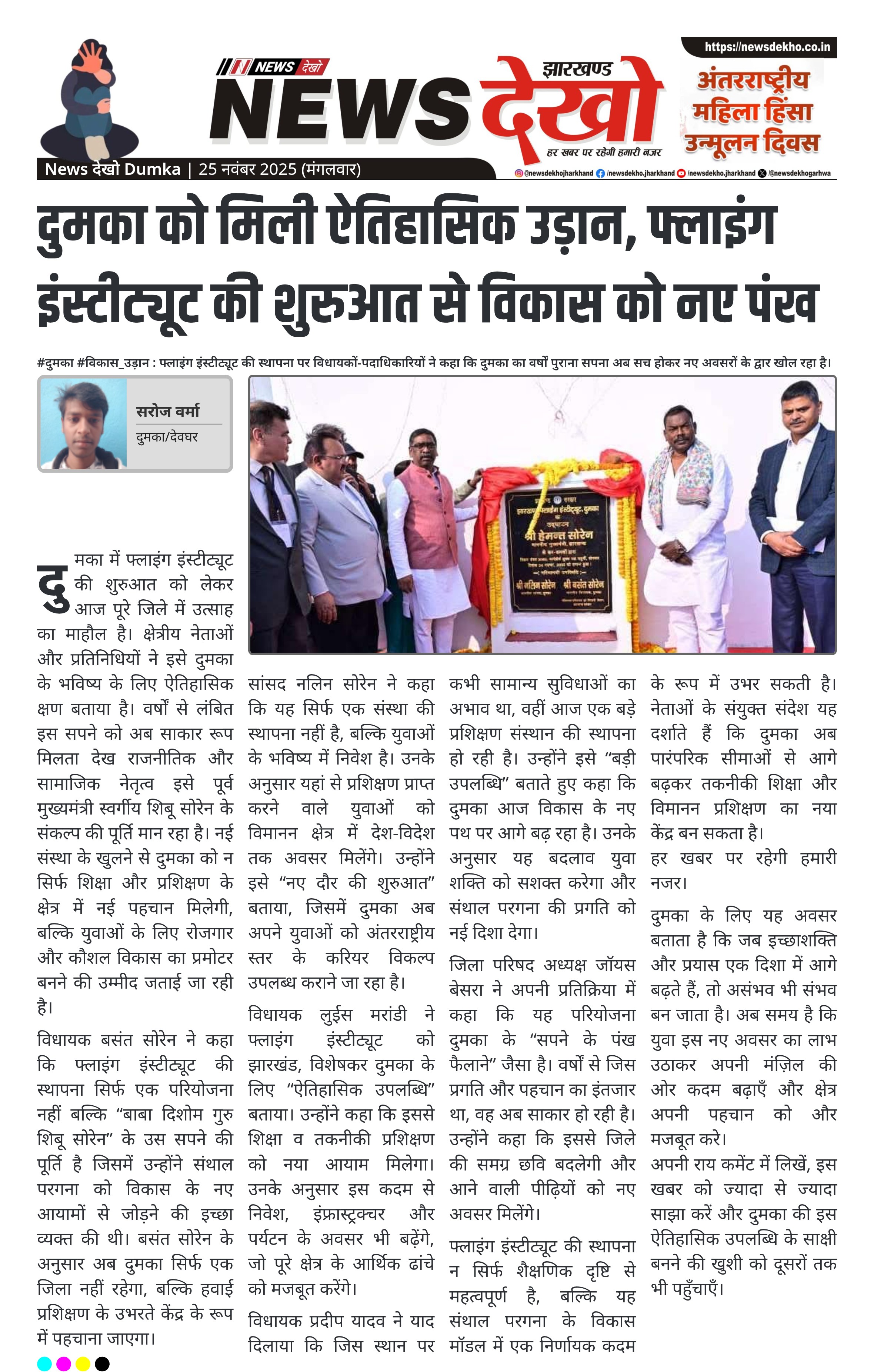• जिला परिषद अध्यक्ष जॉयस बेसरा ने दुमका की उड़ान को “सपने का पंख फैलाना” बताया।