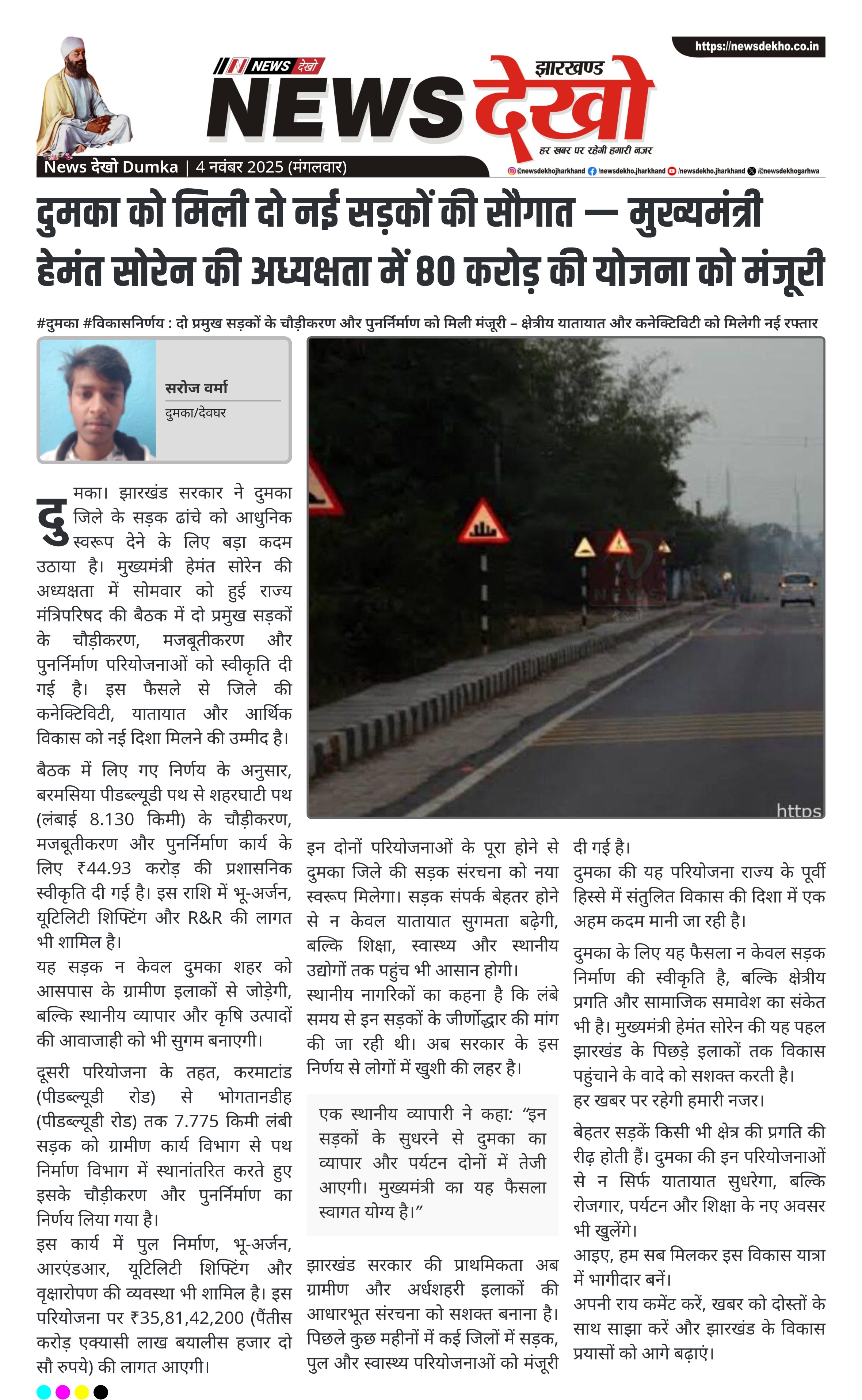 बेहतर सड़कें किसी भी क्षेत्र की प्रगति की रीढ़ होती हैं। दुमका की इन परियोजनाओं से न सिर्फ यातायात सुधरेगा, बल्कि रोजगार, पर्यटन और शिक्षा के नए अवसर भी खुलेंगे।