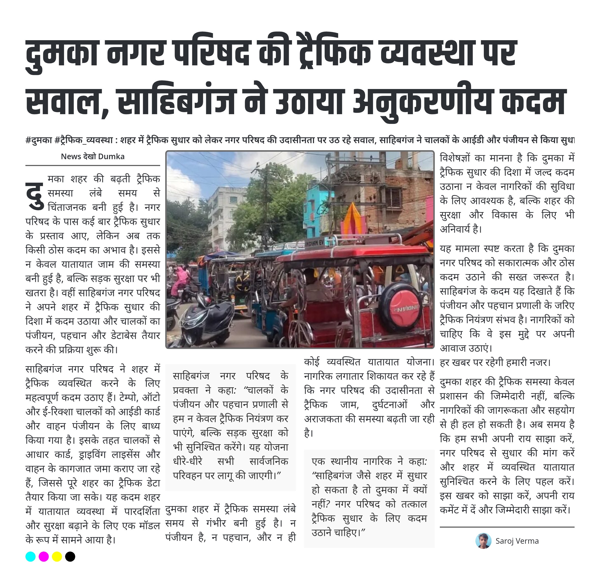 न्यूज़ देखो: दुमका नगर परिषद की ट्रैफिक उदासीनता पर सवाल, साहिबगंज मॉडल से मिलती सीख