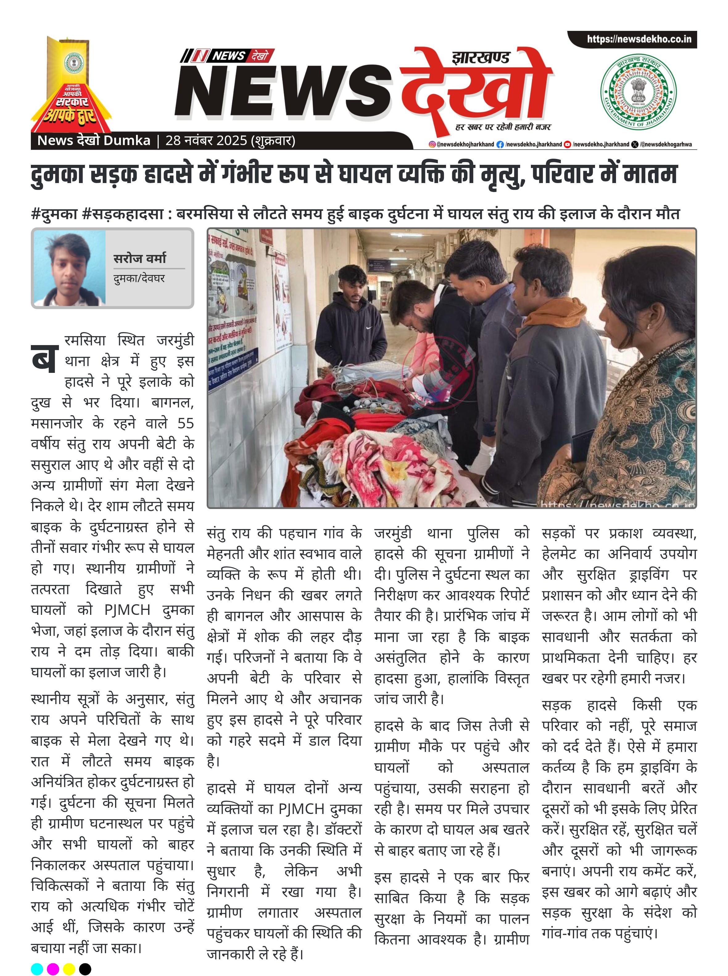 #दुमका #सड़कहादसा : बरमसिया से लौटते समय हुई बाइक दुर्घटना में घायल संतु राय की इलाज के दौरान मौत