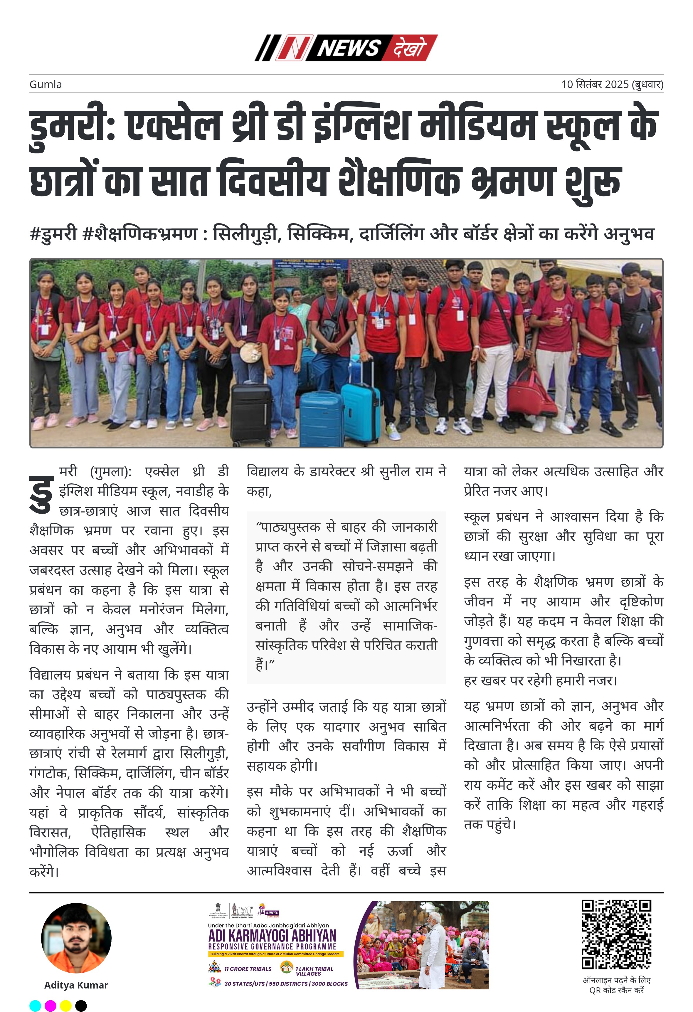 - स्कूल डायरेक्टर सुनील राम ने इसे सर्वांगीण विकास का अवसर बताया।