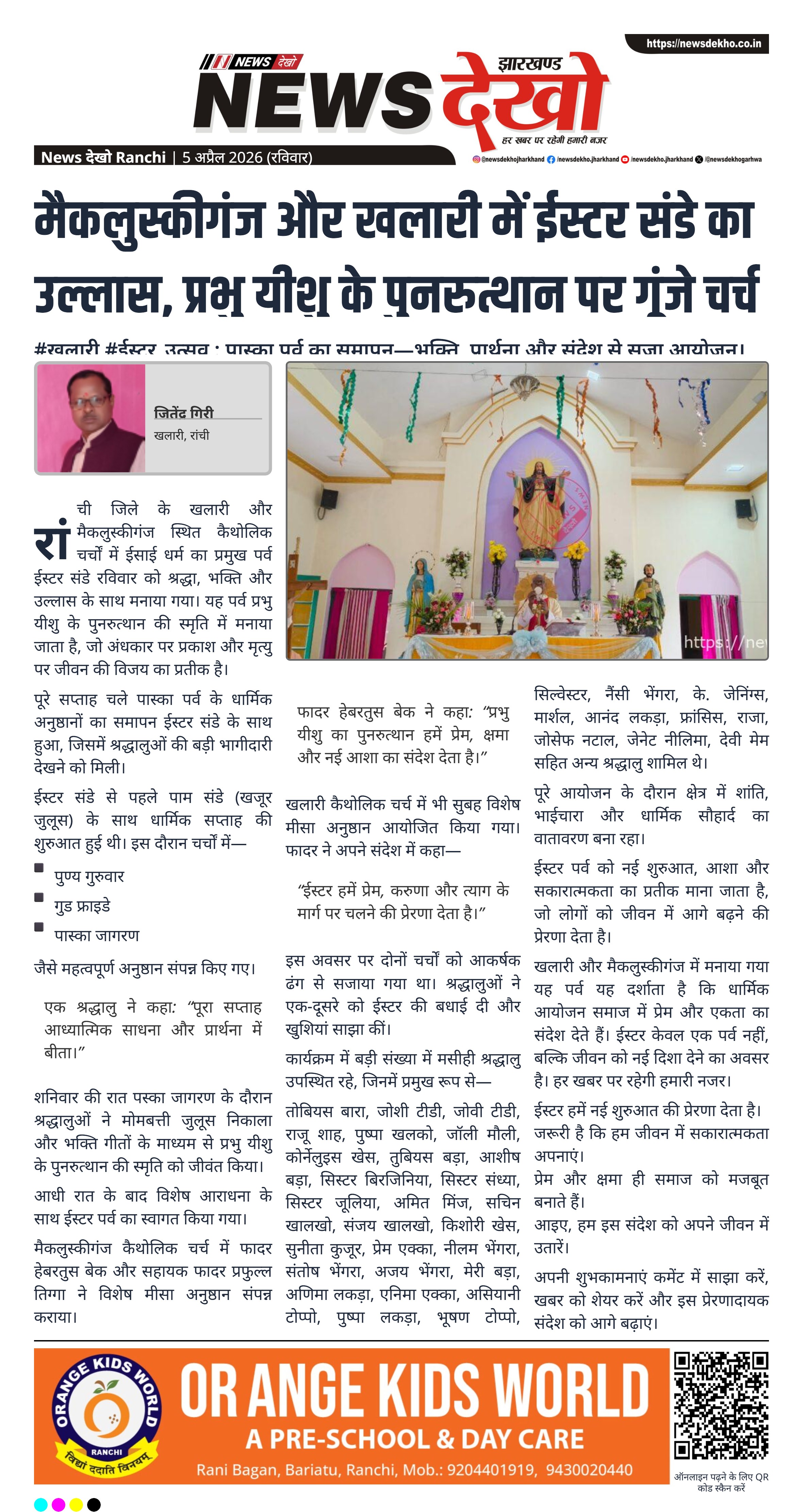 - मैकलुस्कीगंज और खलारी चर्चों में ईस्टर संडे मनाया गया।