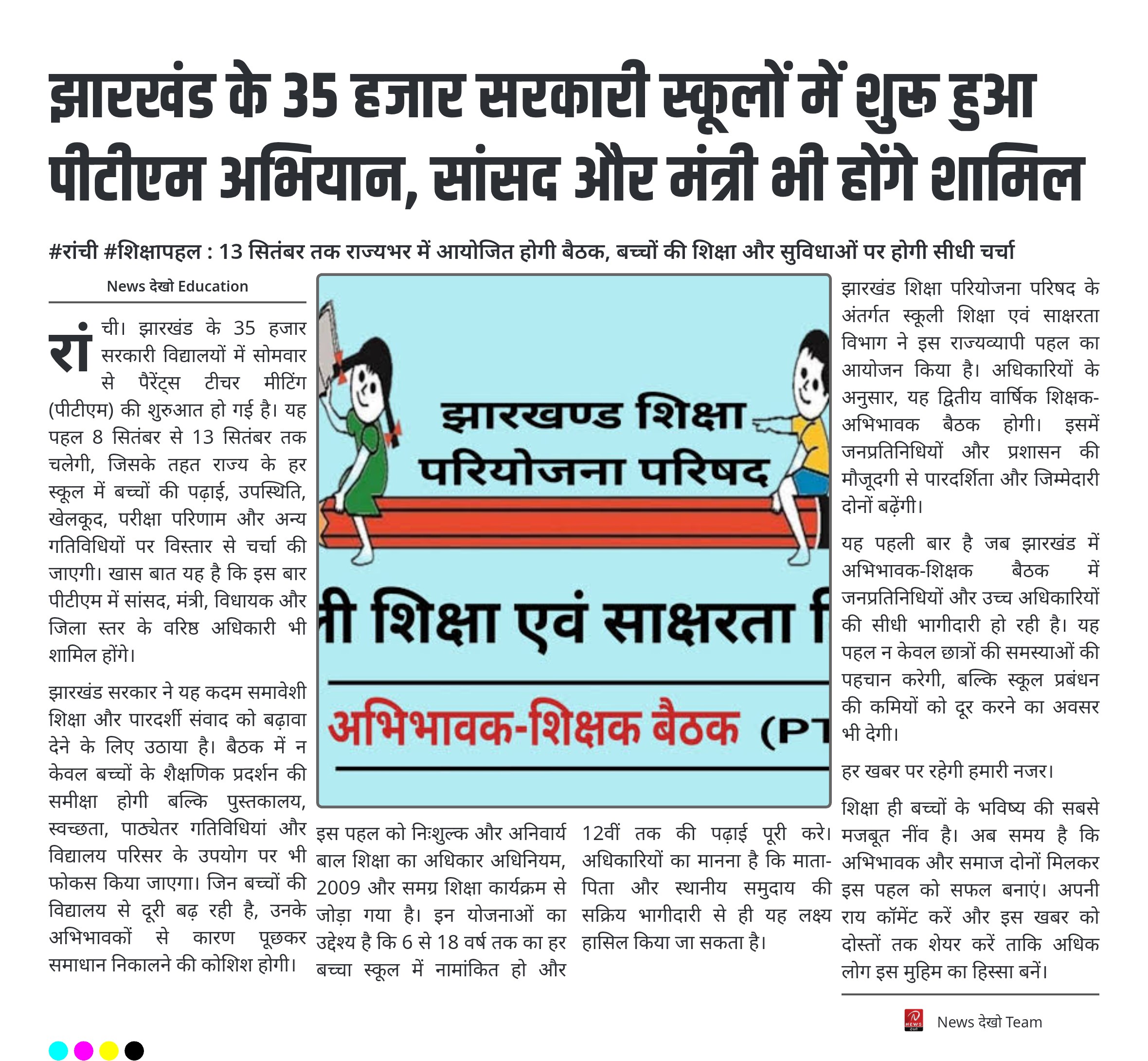 झारखंड के 35 हजार सरकारी स्कूलों में शुरू हुआ पीटीएम अभियान, सांसद और मंत्री भी होंगे शामिल