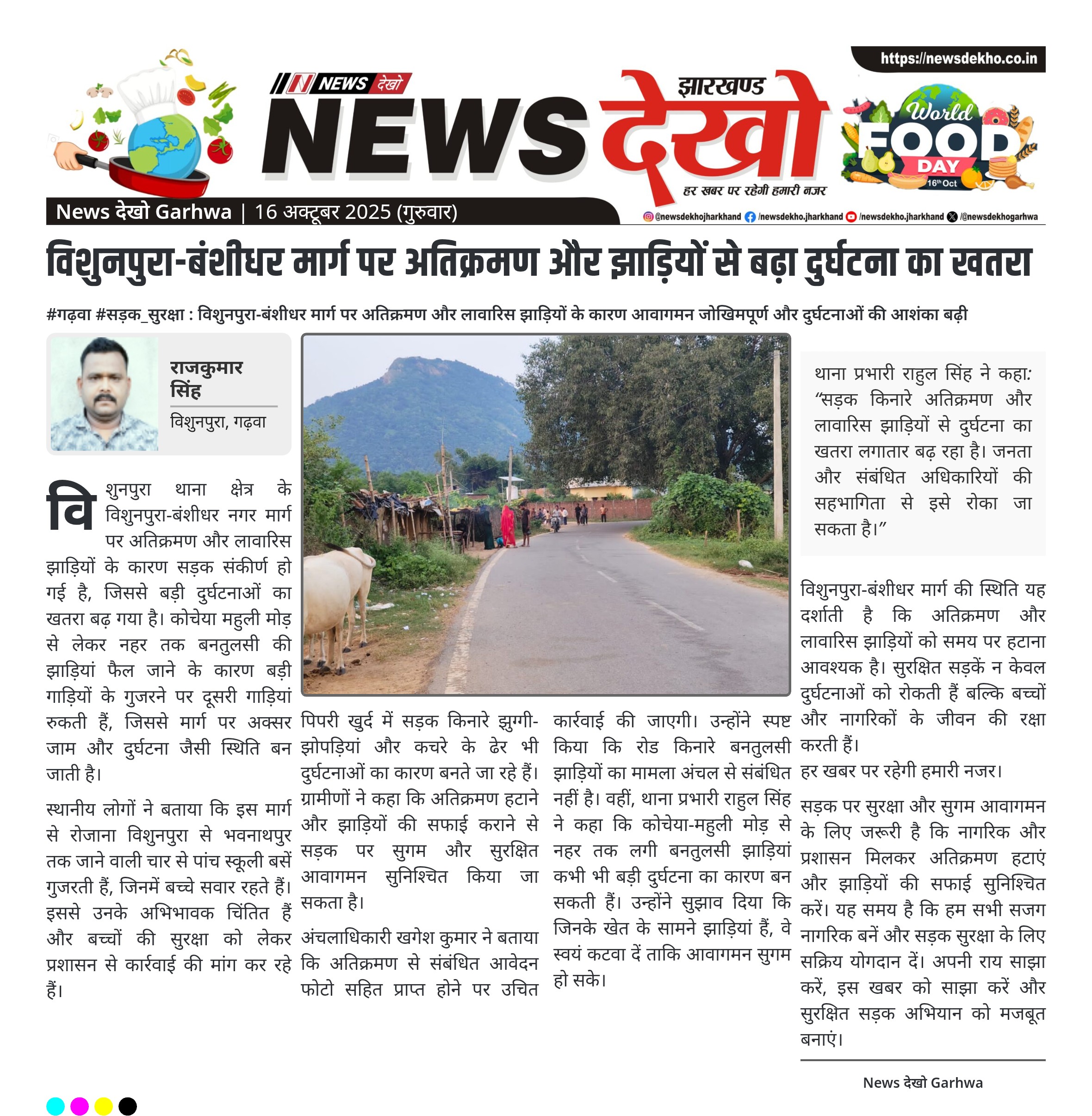 विशुनपुरा-बंशीधर मार्ग की स्थिति यह दर्शाती है कि अतिक्रमण और लावारिस झाड़ियों को समय पर हटाना आवश्यक है। सुरक्षित सड़कें न केवल दुर्घटनाओं को रोकती हैं बल्कि बच्चों और नागरिकों के जीवन की रक्षा करती हैं।