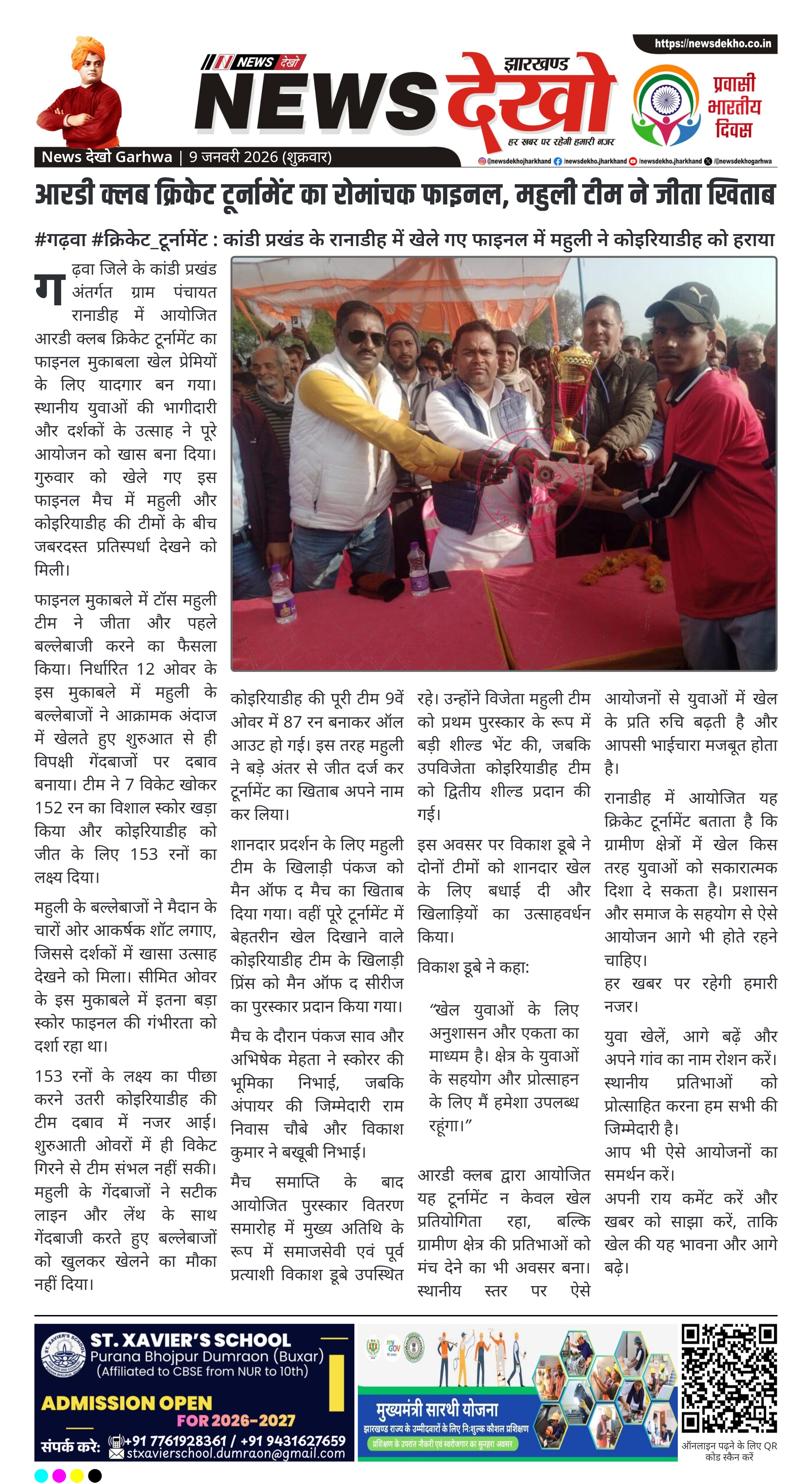 रानाडीह में आयोजित यह क्रिकेट टूर्नामेंट बताता है कि ग्रामीण क्षेत्रों में खेल किस तरह युवाओं को सकारात्मक दिशा दे सकता है। प्रशासन और समाज के सहयोग से ऐसे आयोजन आगे भी होते रहने चाहिए।