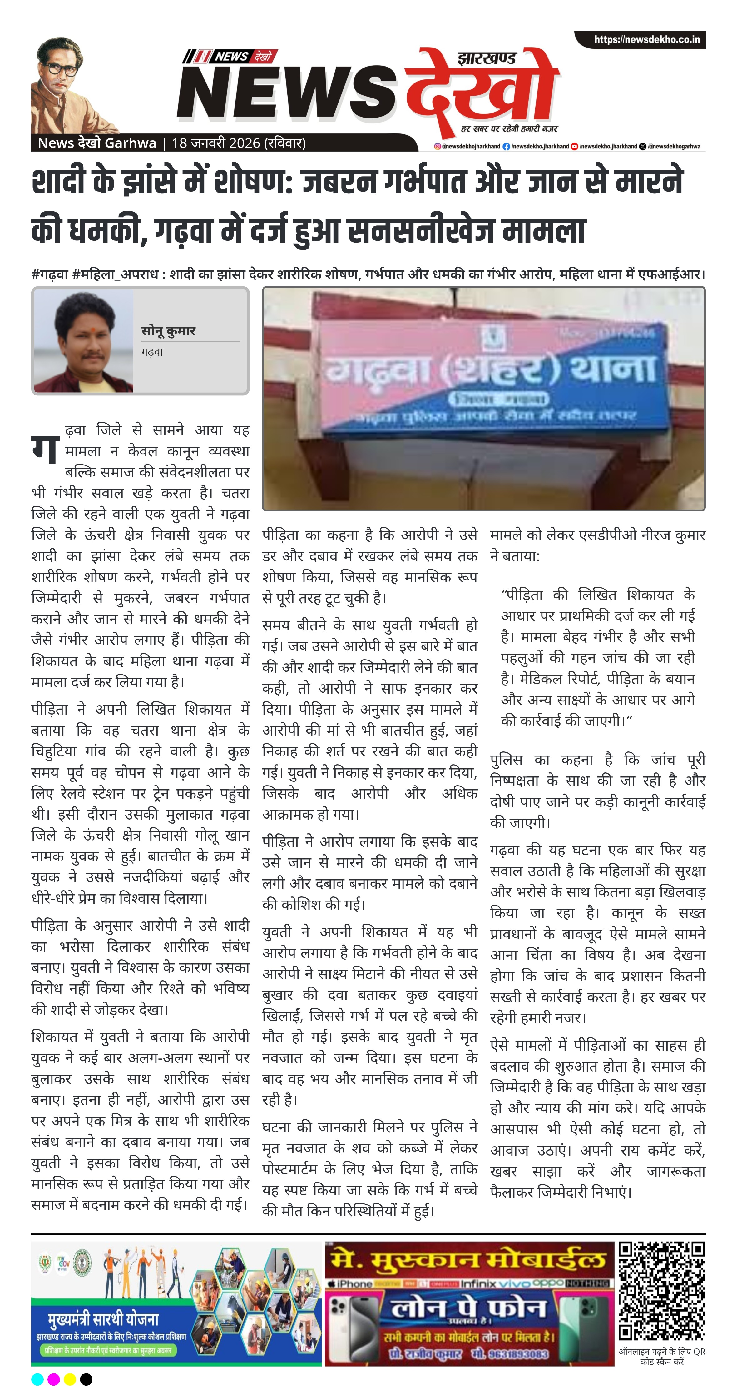 #गढ़वा #महिला_अपराध : शादी का झांसा देकर शारीरिक शोषण, गर्भपात और धमकी का गंभीर आरोप, महिला थाना में एफआईआर।