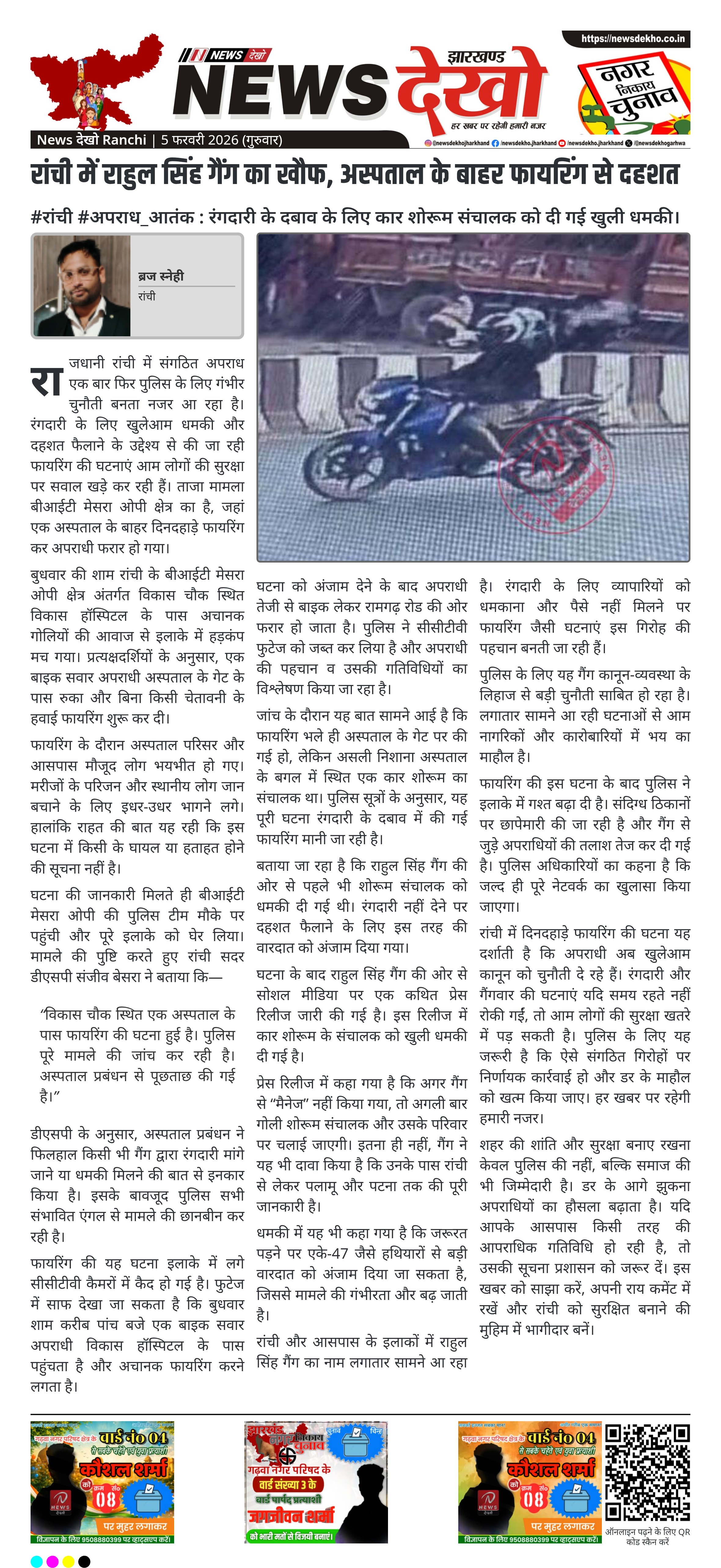 - बीआईटी मेसरा ओपी क्षेत्र में विकास हॉस्पिटल के बाहर फायरिंग की घटना।