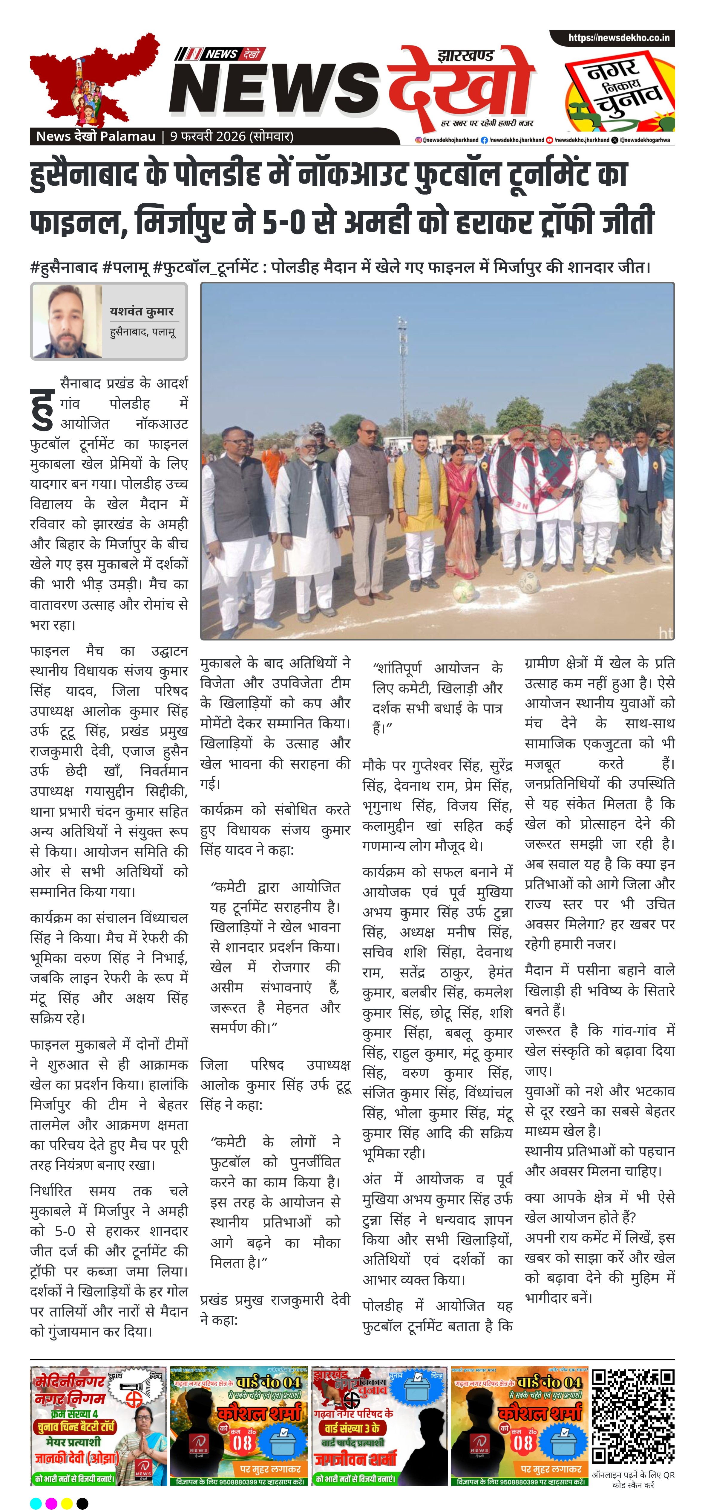 - पोलडीह उच्च विद्यालय मैदान, हुसैनाबाद में फाइनल मुकाबला संपन्न।