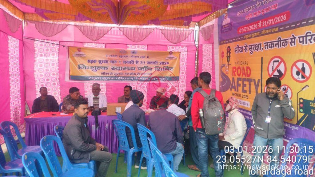 राष्ट्रीय सड़क सुरक्षा माह 2026 के अंतर्गत गुमला जिला प्रशासन और परिवहन विभाग के संयुक्त तत्वावधान में शनिवार को एक महत्वपूर्ण स्वास्थ्य जागरूकता कार्यक्रम का आयोजन किया गया। सीख से सुरक्षा और तकनीक से परिवर्तन अभियान के तहत दुन्दुरिया बस स्टैंड में वाहन चालकों के लिए निशुल्क नेत्र जांच एवं व्यापक स्वास्थ्य परीक्षण शिविर लगाया गया। इस शिविर का मुख्य उद्देश्य यह सुनिश्चित करना था कि सड़क पर चलने वाले वाहन न केवल तकनीकी रूप से सुरक्षित हों, बल्कि उन्हें चलाने वाले चालक भी पूरी तरह स्वस्थ और सतर्क हों।