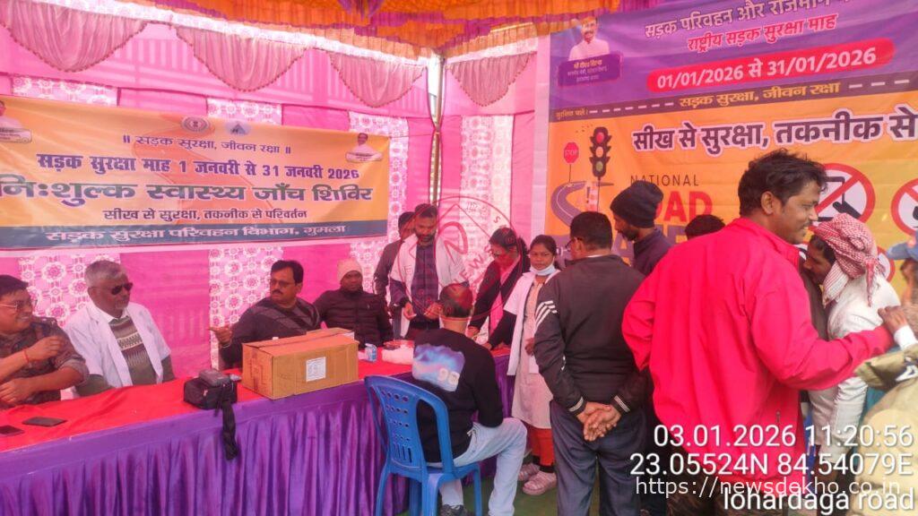 राष्ट्रीय सड़क सुरक्षा माह 2026 के अंतर्गत गुमला जिला प्रशासन और परिवहन विभाग के संयुक्त तत्वावधान में शनिवार को एक महत्वपूर्ण स्वास्थ्य जागरूकता कार्यक्रम का आयोजन किया गया। सीख से सुरक्षा और तकनीक से परिवर्तन अभियान के तहत दुन्दुरिया बस स्टैंड में वाहन चालकों के लिए निशुल्क नेत्र जांच एवं व्यापक स्वास्थ्य परीक्षण शिविर लगाया गया। इस शिविर का मुख्य उद्देश्य यह सुनिश्चित करना था कि सड़क पर चलने वाले वाहन न केवल तकनीकी रूप से सुरक्षित हों, बल्कि उन्हें चलाने वाले चालक भी पूरी तरह स्वस्थ और सतर्क हों।