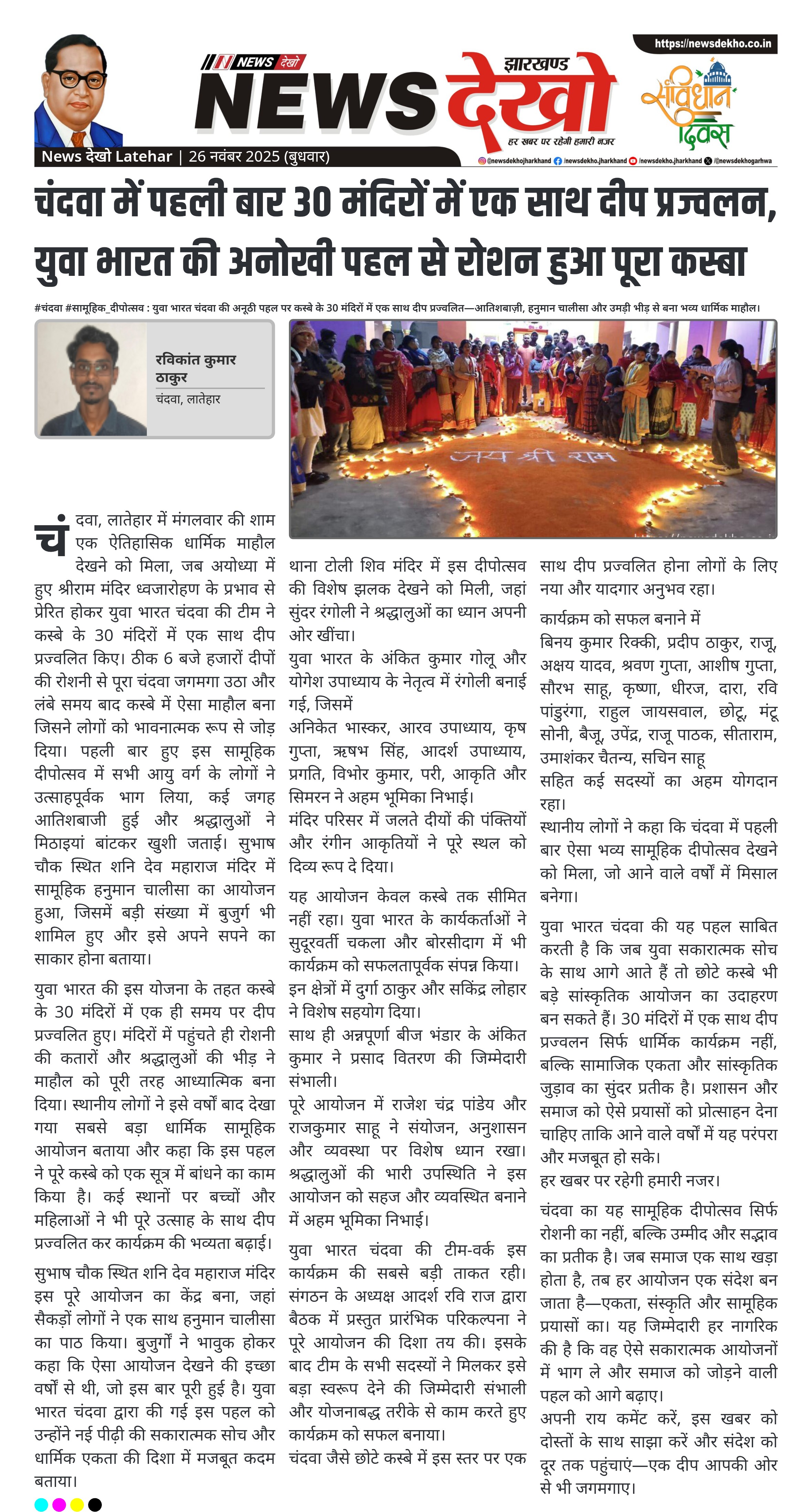 चंदवा में पहली बार 30 मंदिरों में एक साथ दीप प्रज्वलन, युवा भारत की अनोखी पहल से रोशन हुआ पूरा कस्बा