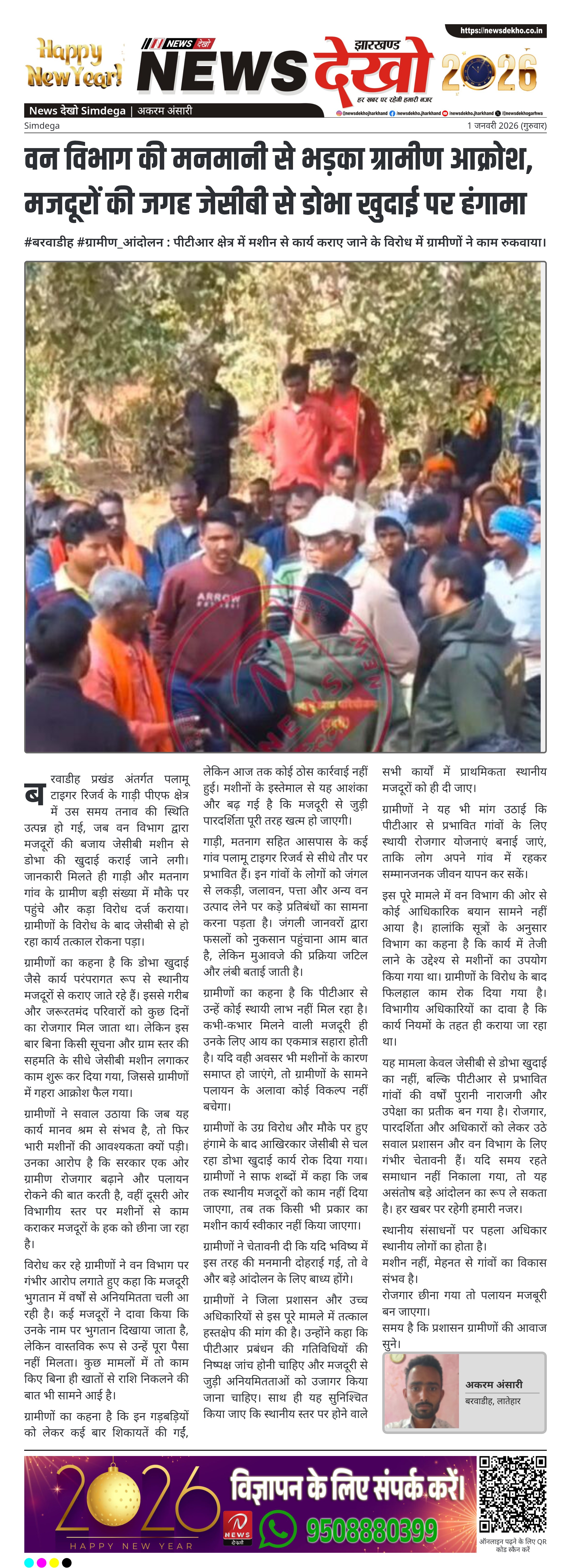 वन विभाग की मनमानी से भड़का ग्रामीण आक्रोश, मजदूरों की जगह जेसीबी से डोभा खुदाई पर हंगामा