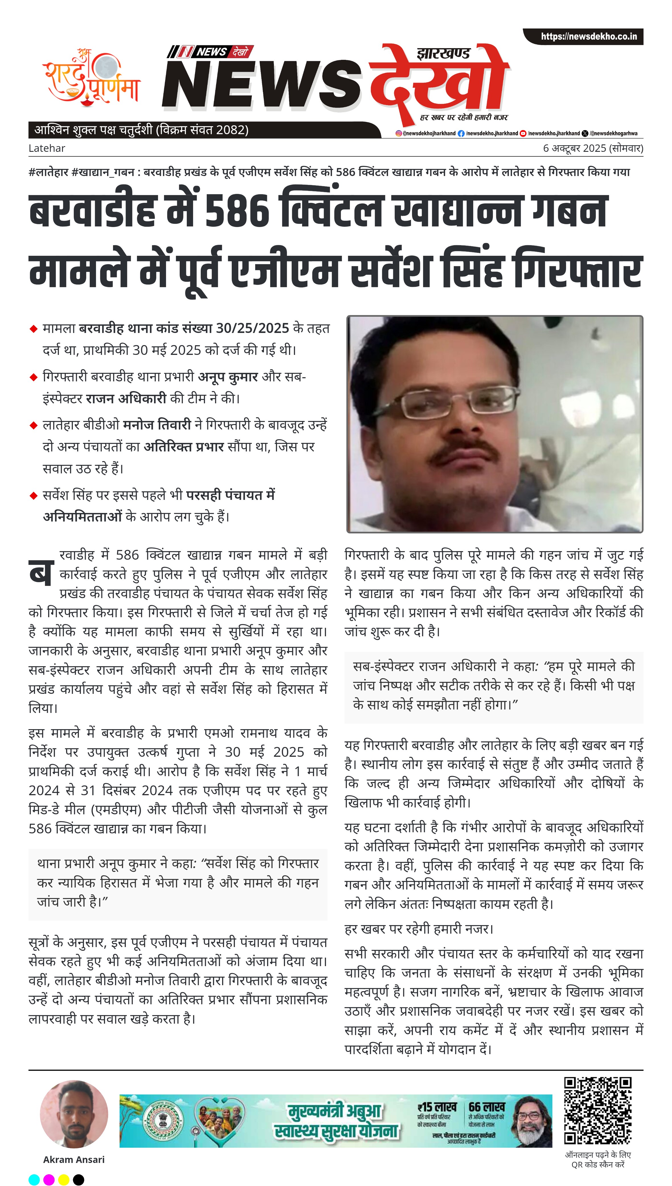 न्यूज़ देखो: बरवाडीह में खाद्यान्न गबन मामले में पूर्व एजीएम की गिरफ्तारी ने प्रशासनिक जवाबदेही को उजागर किया