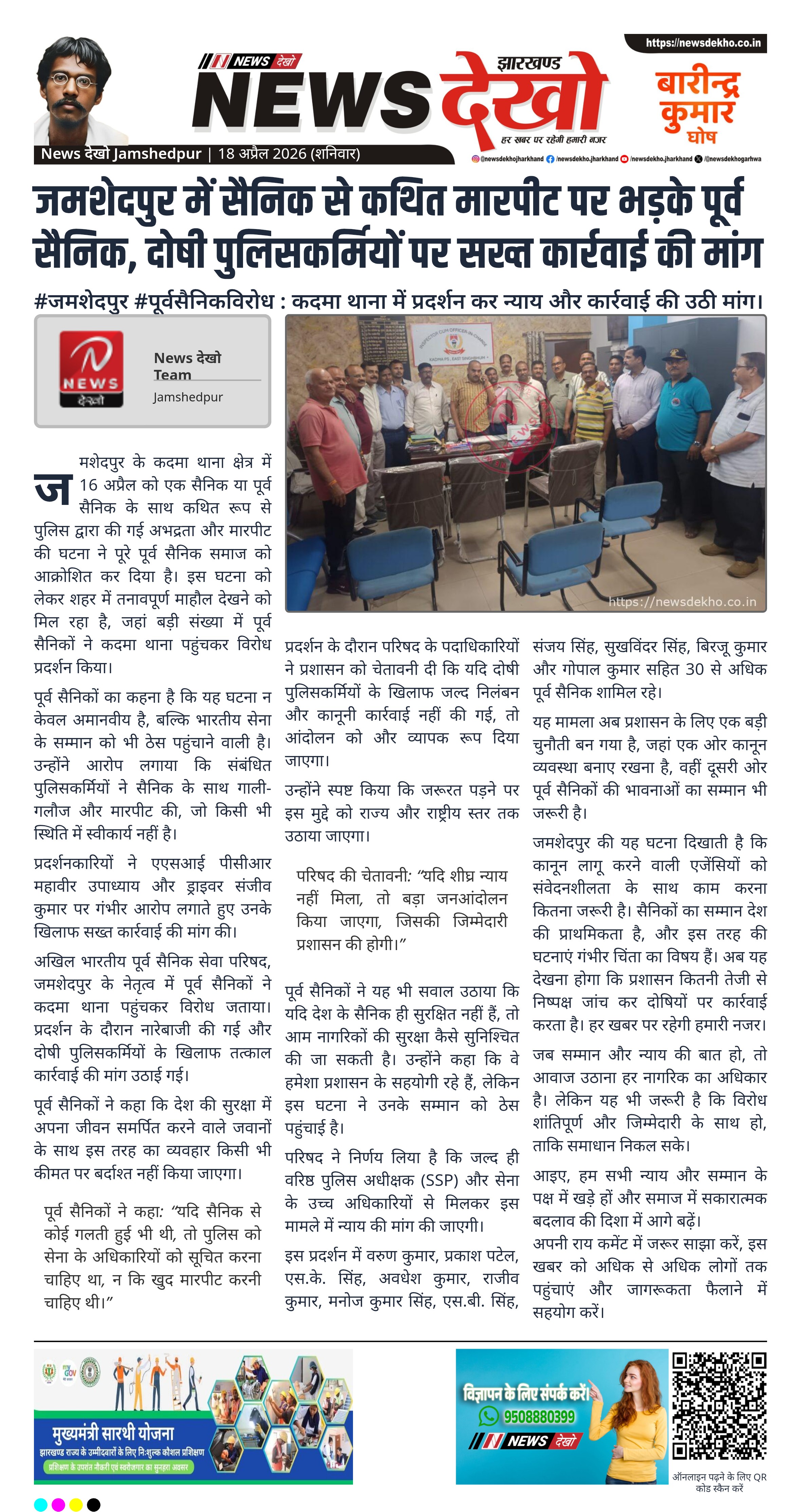 जमशेदपुर की यह घटना दिखाती है कि कानून लागू करने वाली एजेंसियों को संवेदनशीलता के साथ काम करना कितना जरूरी है। सैनिकों का सम्मान देश की प्राथमिकता है, और इस तरह की घटनाएं गंभीर चिंता का विषय हैं। अब यह देखना होगा कि प्रशासन कितनी तेजी से निष्पक्ष जांच कर दोषियों पर कार्रवाई करता है। हर खबर पर रहेगी हमारी नजर।