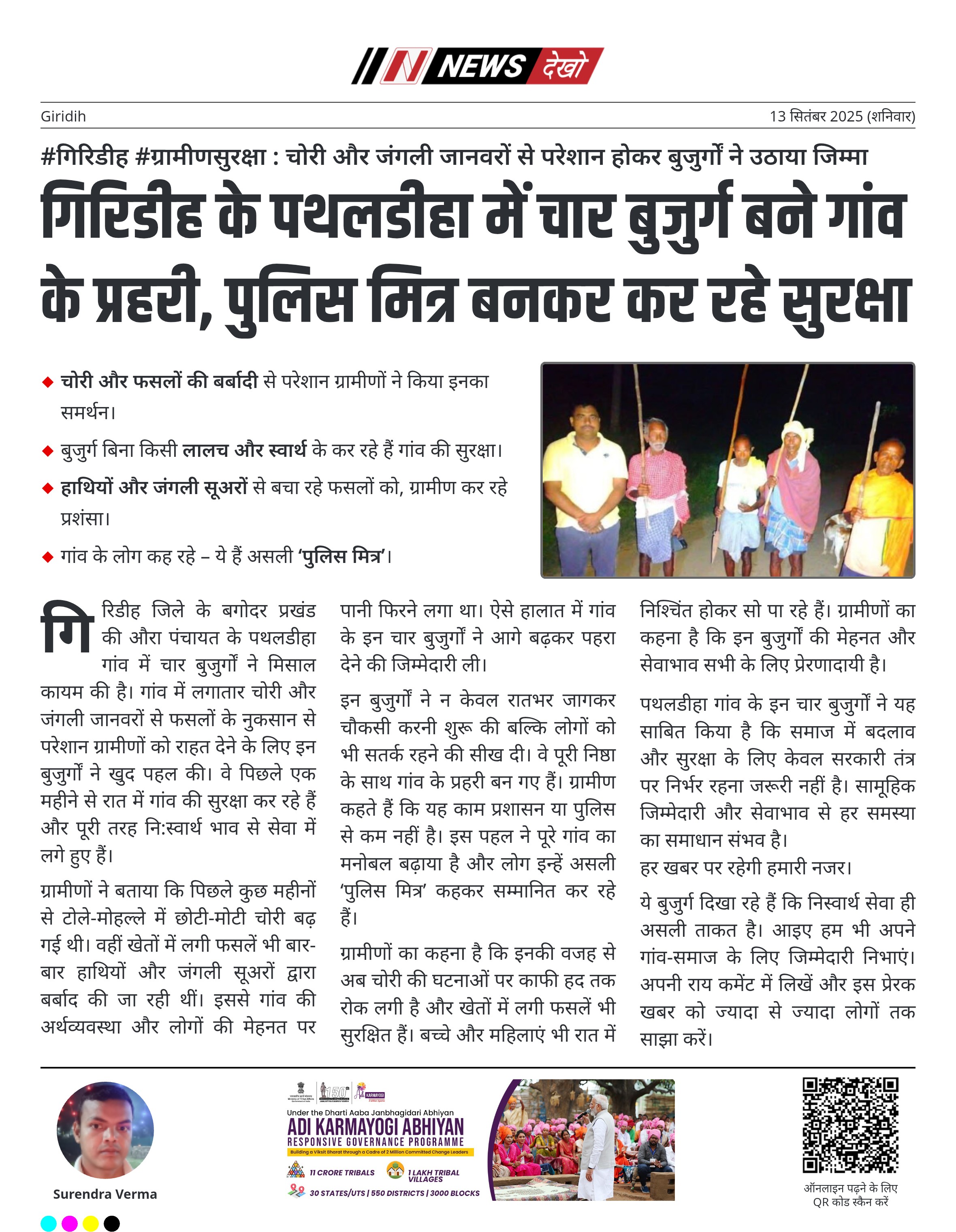 गिरिडीह के पथलडीहा में चार बुजुर्ग बने गांव के प्रहरी, पुलिस मित्र बनकर कर रहे सुरक्षा