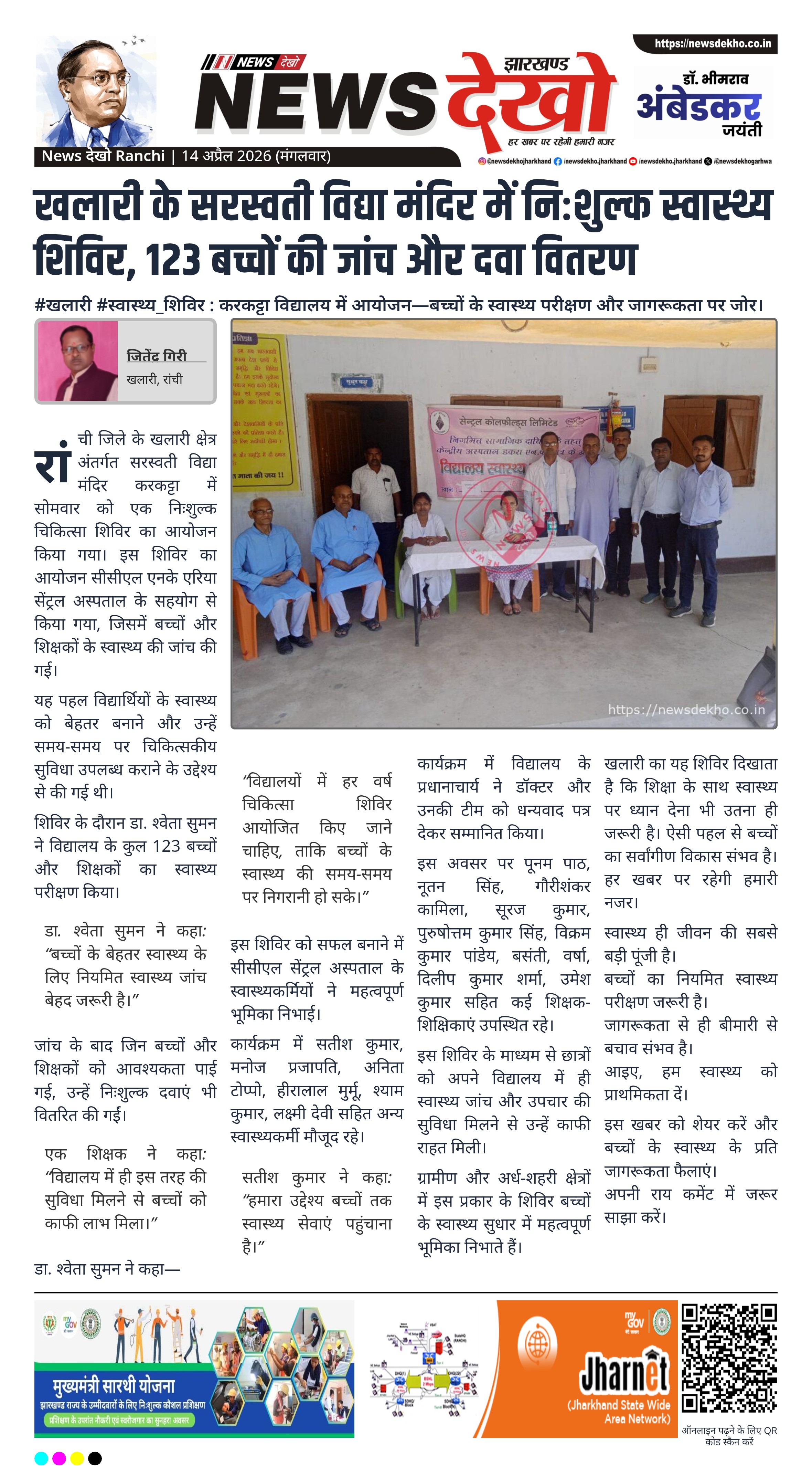 खलारी का यह शिविर दिखाता है कि शिक्षा के साथ स्वास्थ्य पर ध्यान देना भी उतना ही जरूरी है। ऐसी पहल से बच्चों का सर्वांगीण विकास संभव है। हर खबर पर रहेगी हमारी नजर।