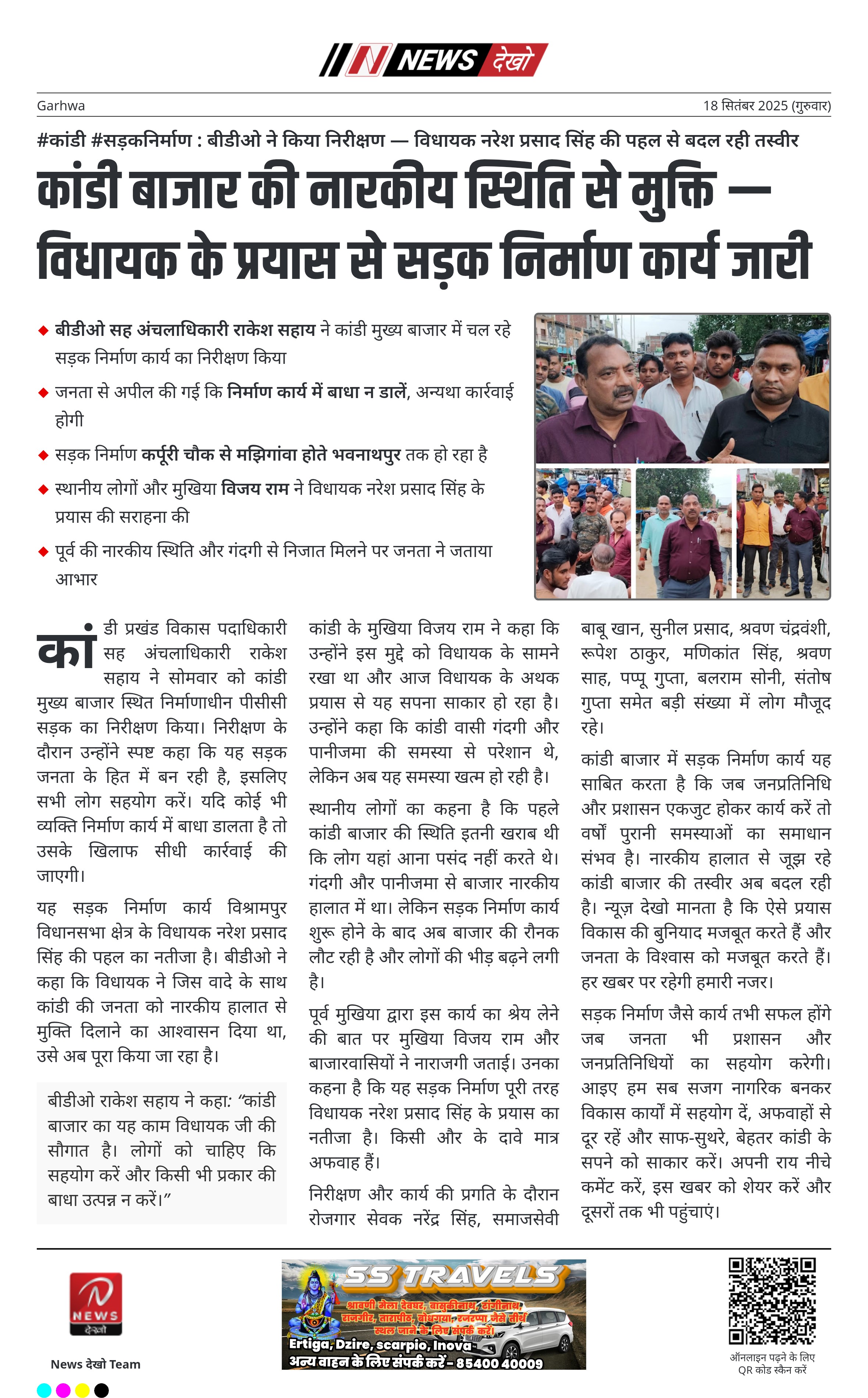 सड़क निर्माण जैसे कार्य तभी सफल होंगे जब जनता भी प्रशासन और जनप्रतिनिधियों का सहयोग करेगी। आइए हम सब सजग नागरिक बनकर विकास कार्यों में सहयोग दें, अफवाहों से दूर रहें और साफ-सुथरे, बेहतर कांडी के सपने को साकार करें। अपनी राय नीचे कमेंट करें, इस खबर को शेयर करें और दूसरों तक भी पहुंचाएं।