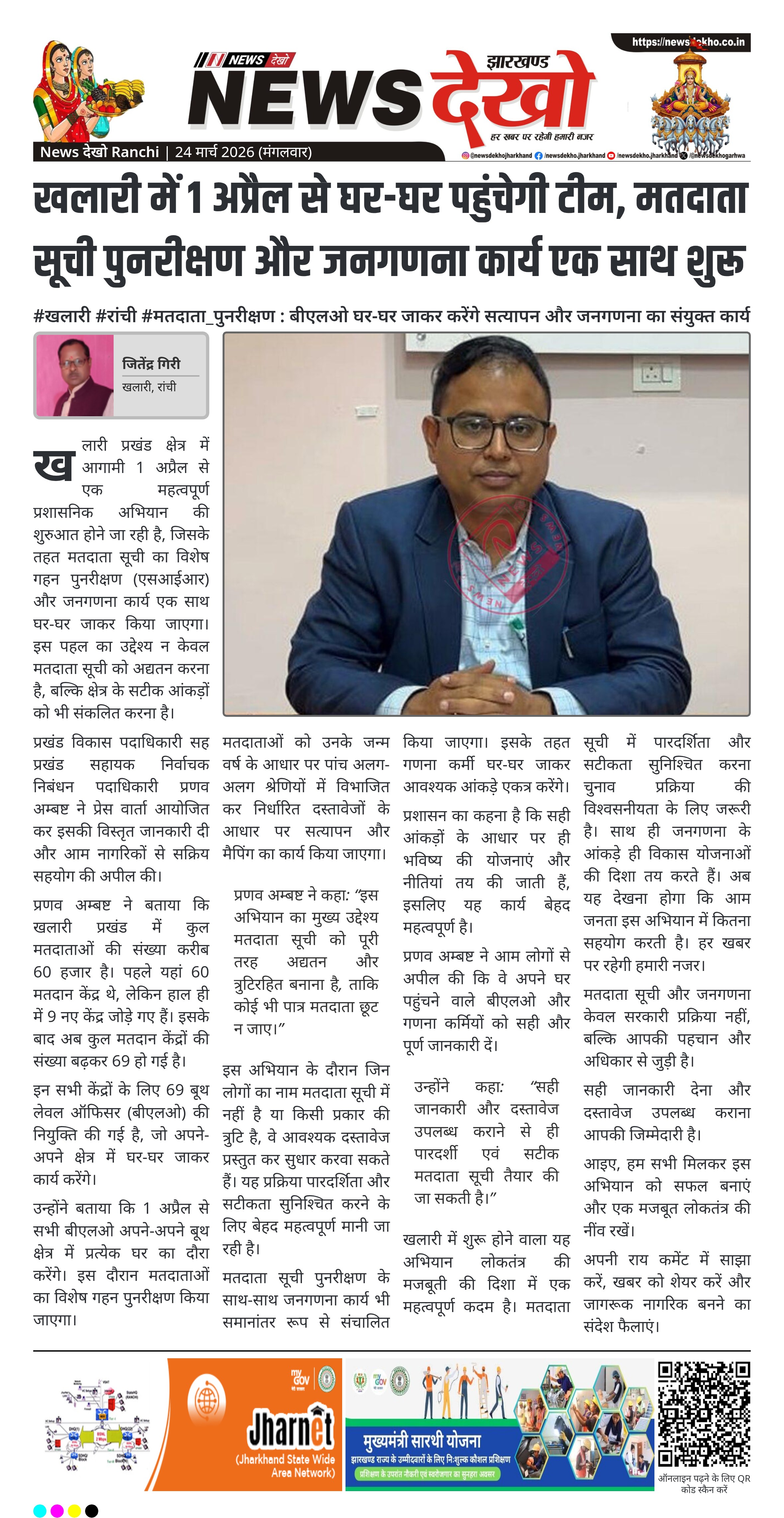खलारी में 1 अप्रैल से घर-घर पहुंचेगी टीम, मतदाता सूची पुनरीक्षण और जनगणना कार्य एक साथ शुरू
