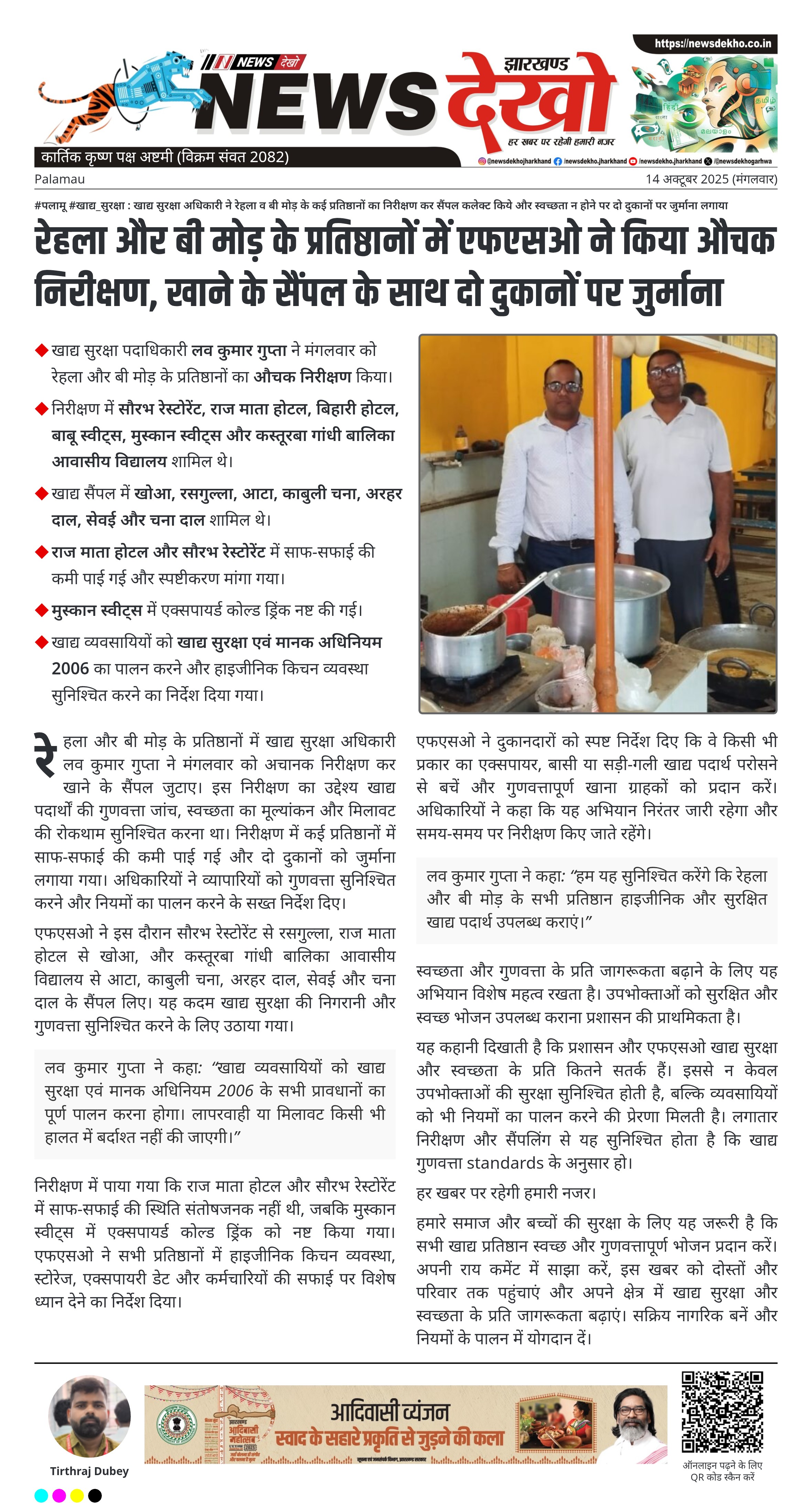 न्यूज़ देखो: रेहला और बी मोड़ में खाद्य सुरक्षा का सख्त निरीक्षण